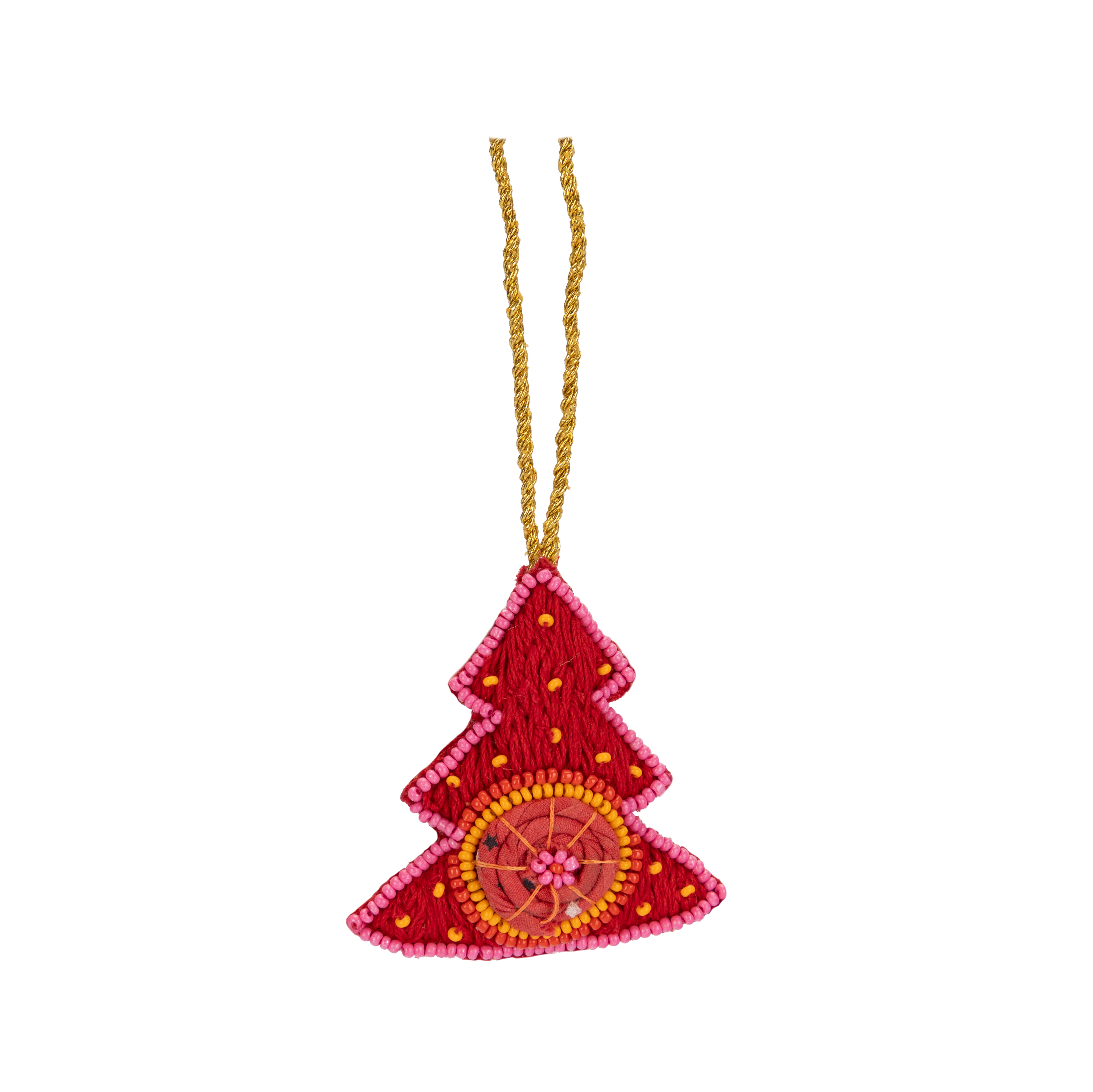 Filz, mit traditioneller Zari-Stickerei, rot/rosa/orange, 5 x 5 x 2,5 cm