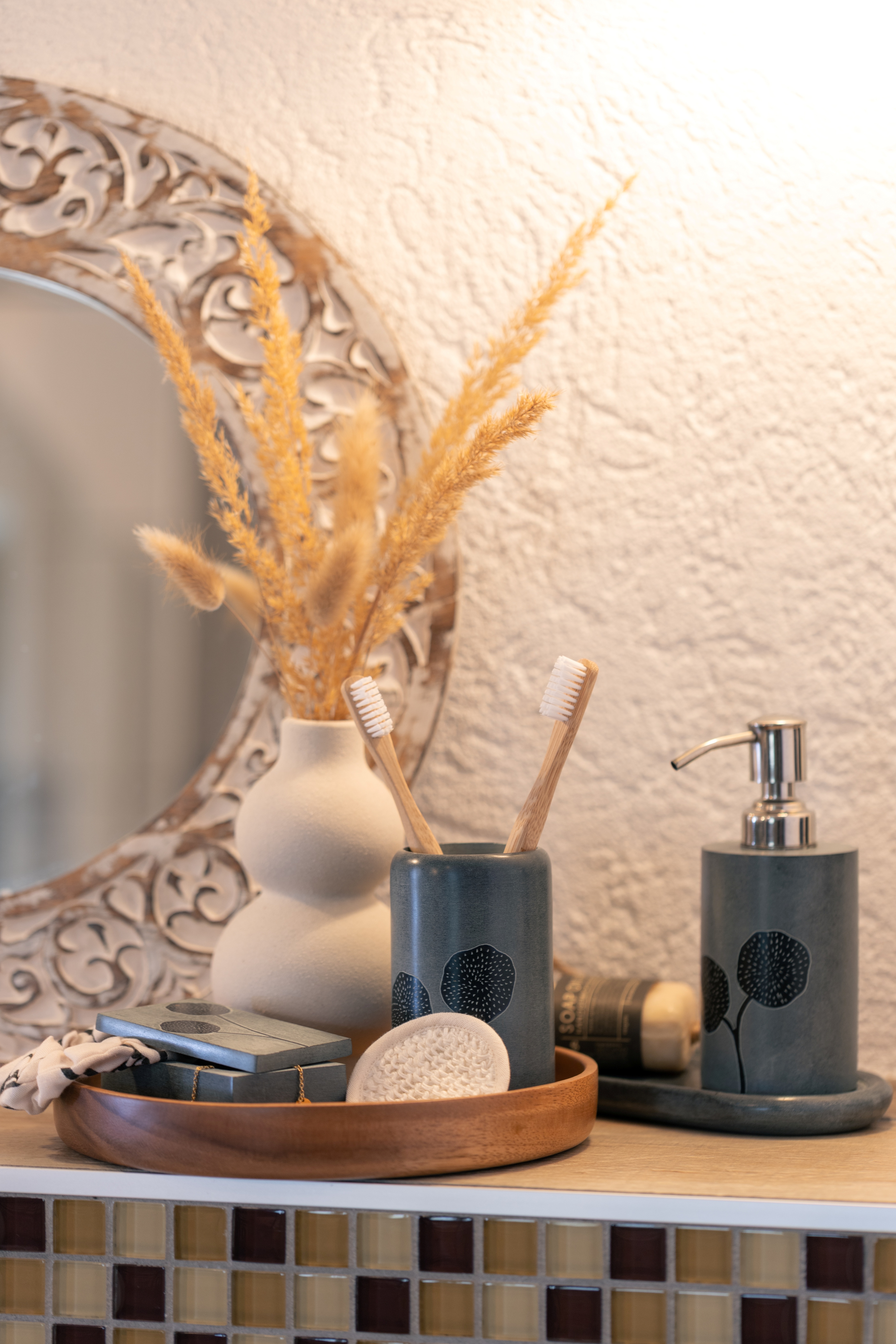 Palewa-Speckstein, naturgrau/schwarz, H 16 cm, Ø 6,5 cm