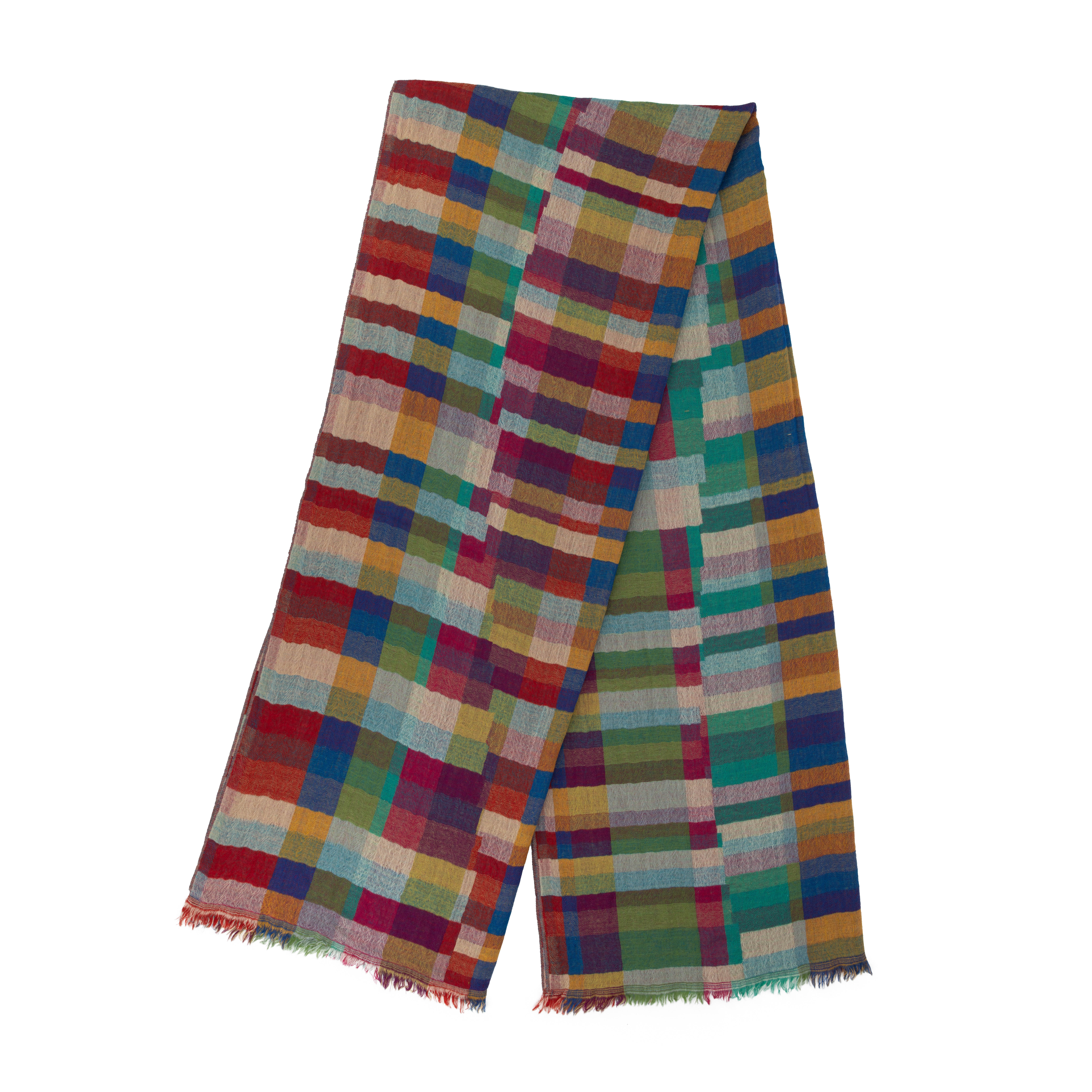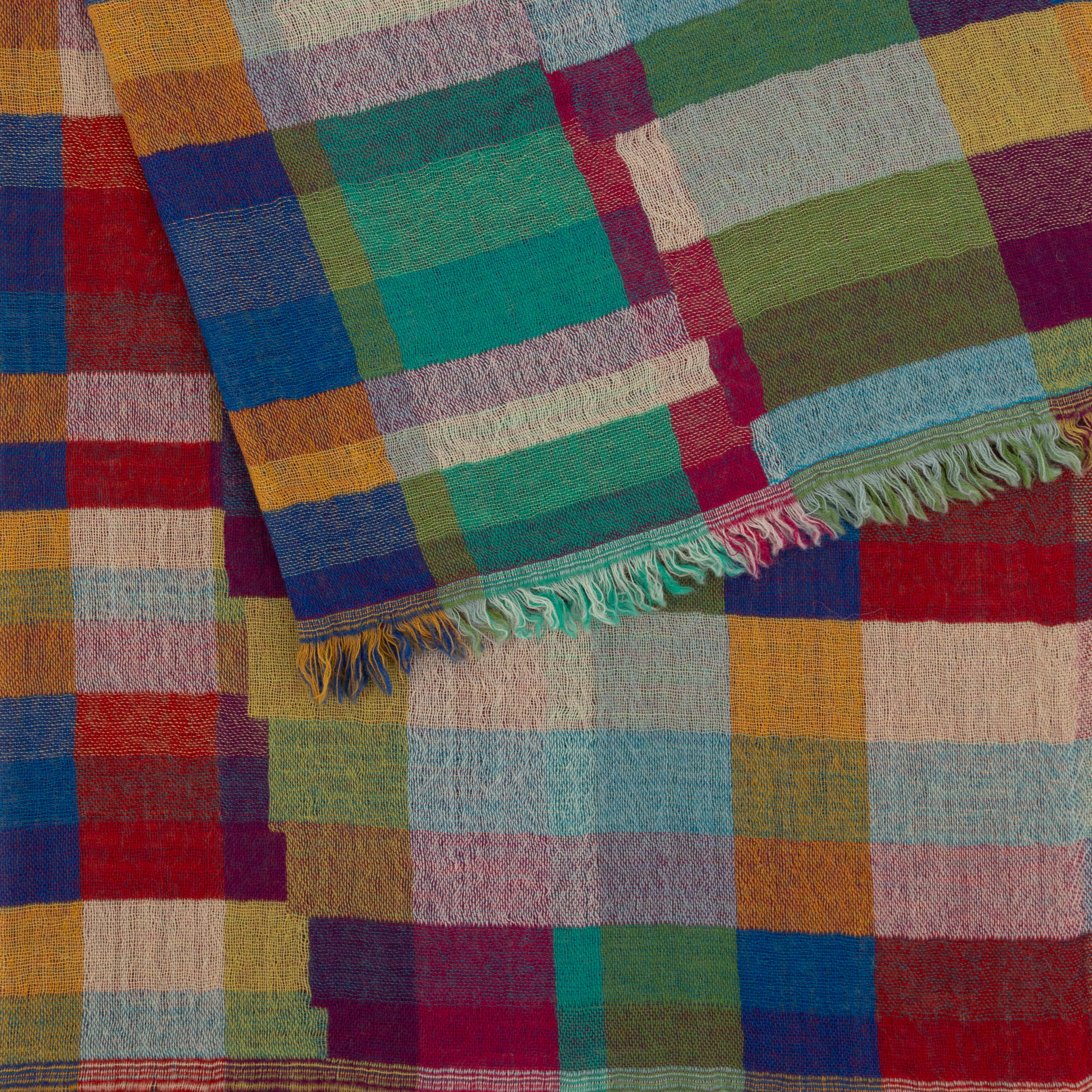 100% Merino-Wolle, handgewebt, bunt, 70 x 180 cm