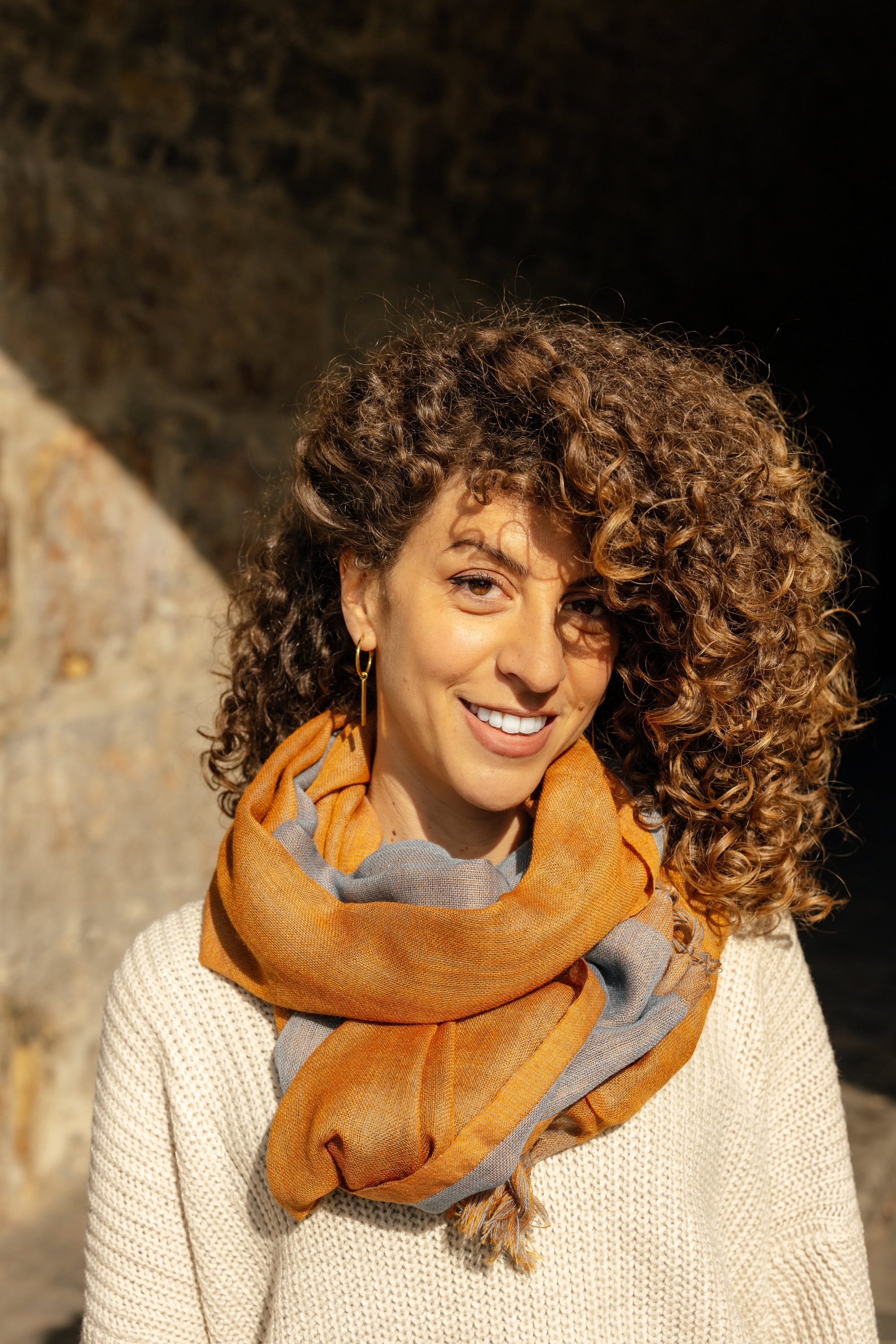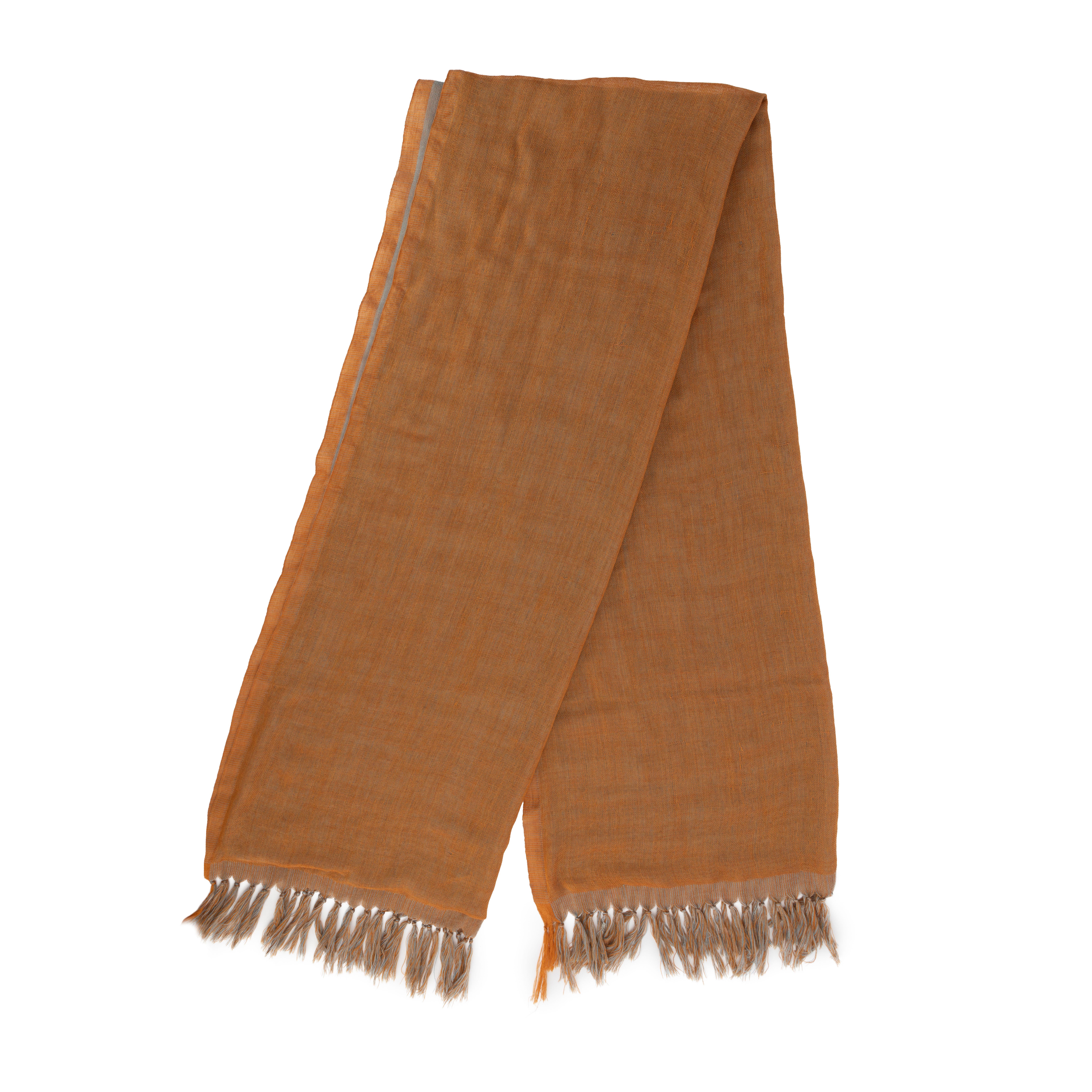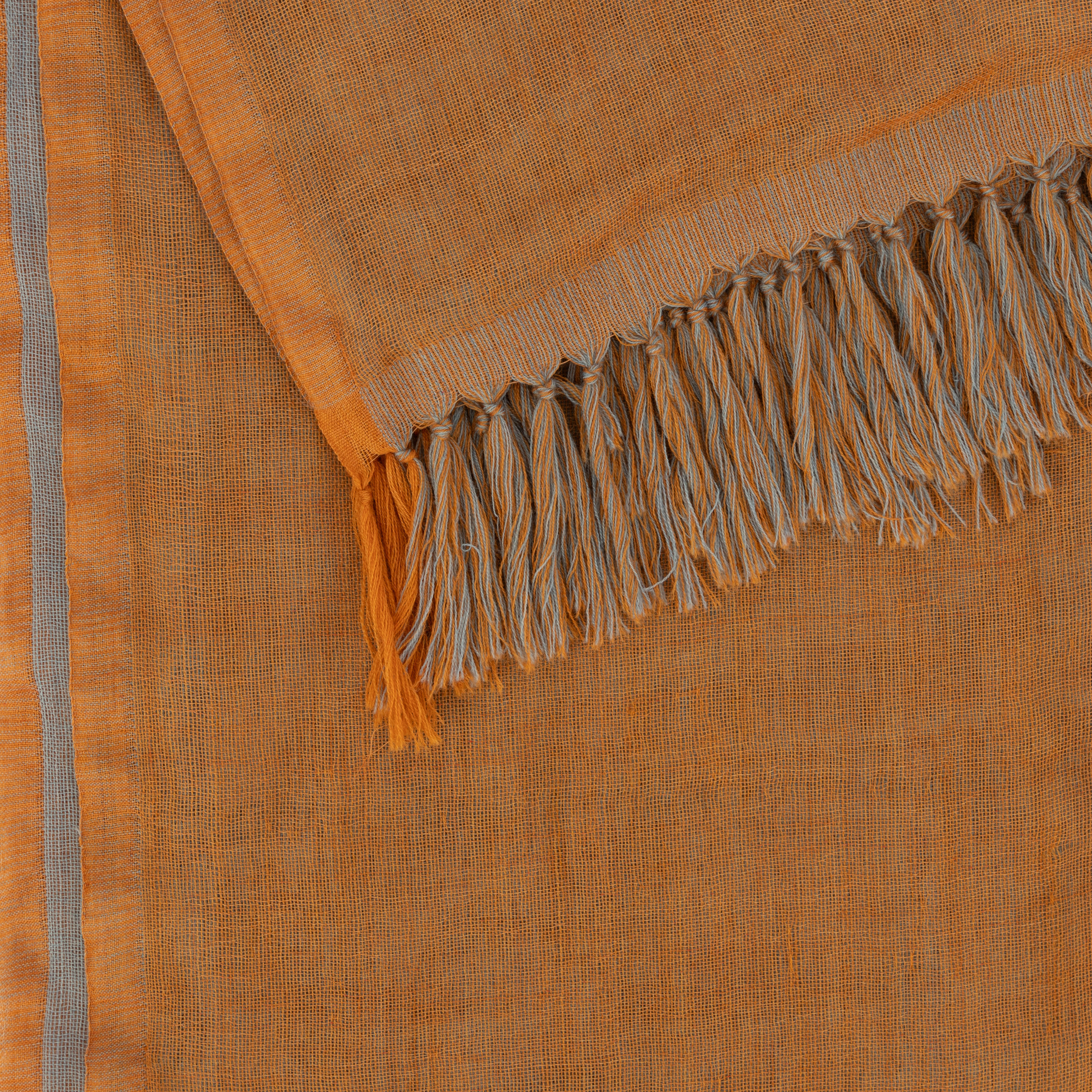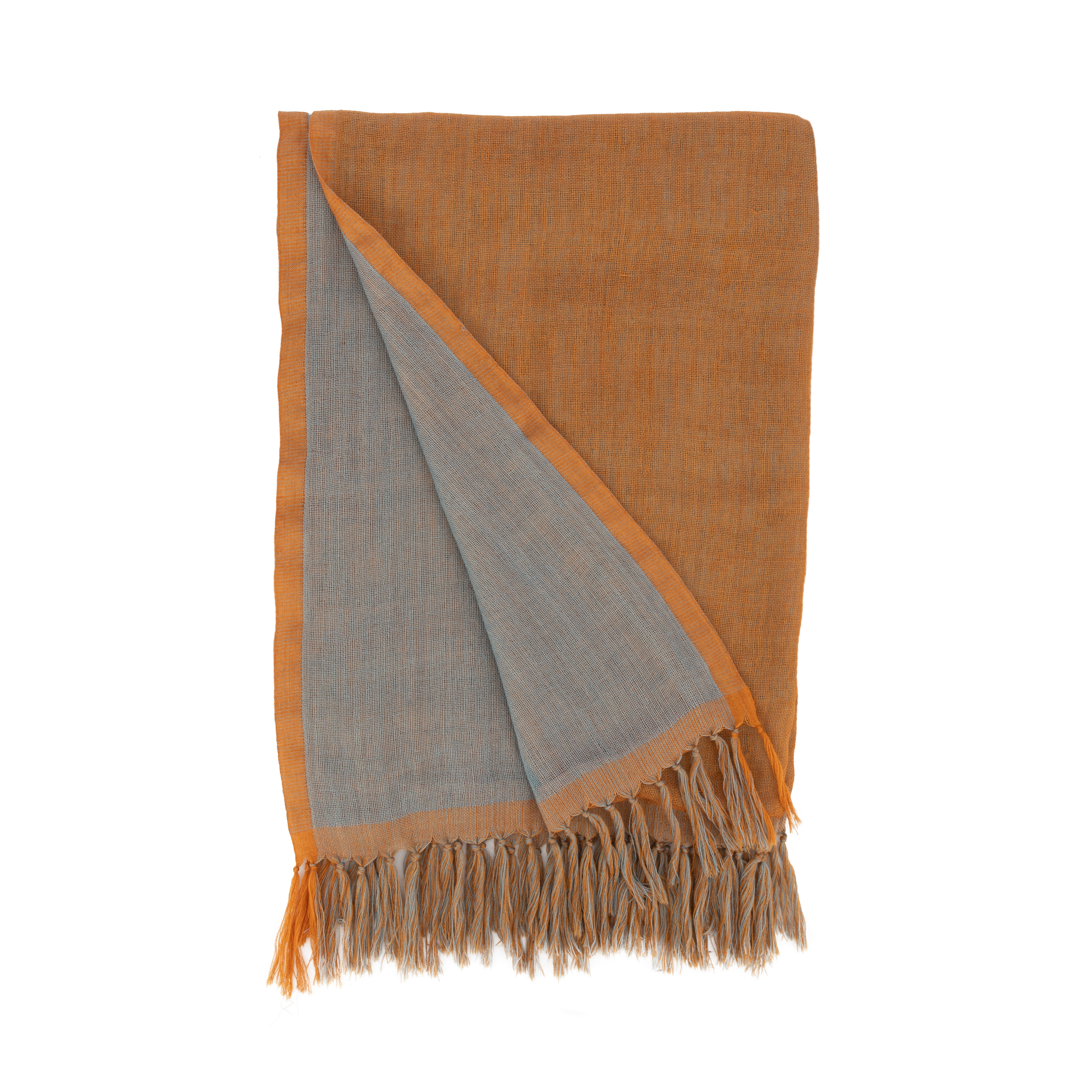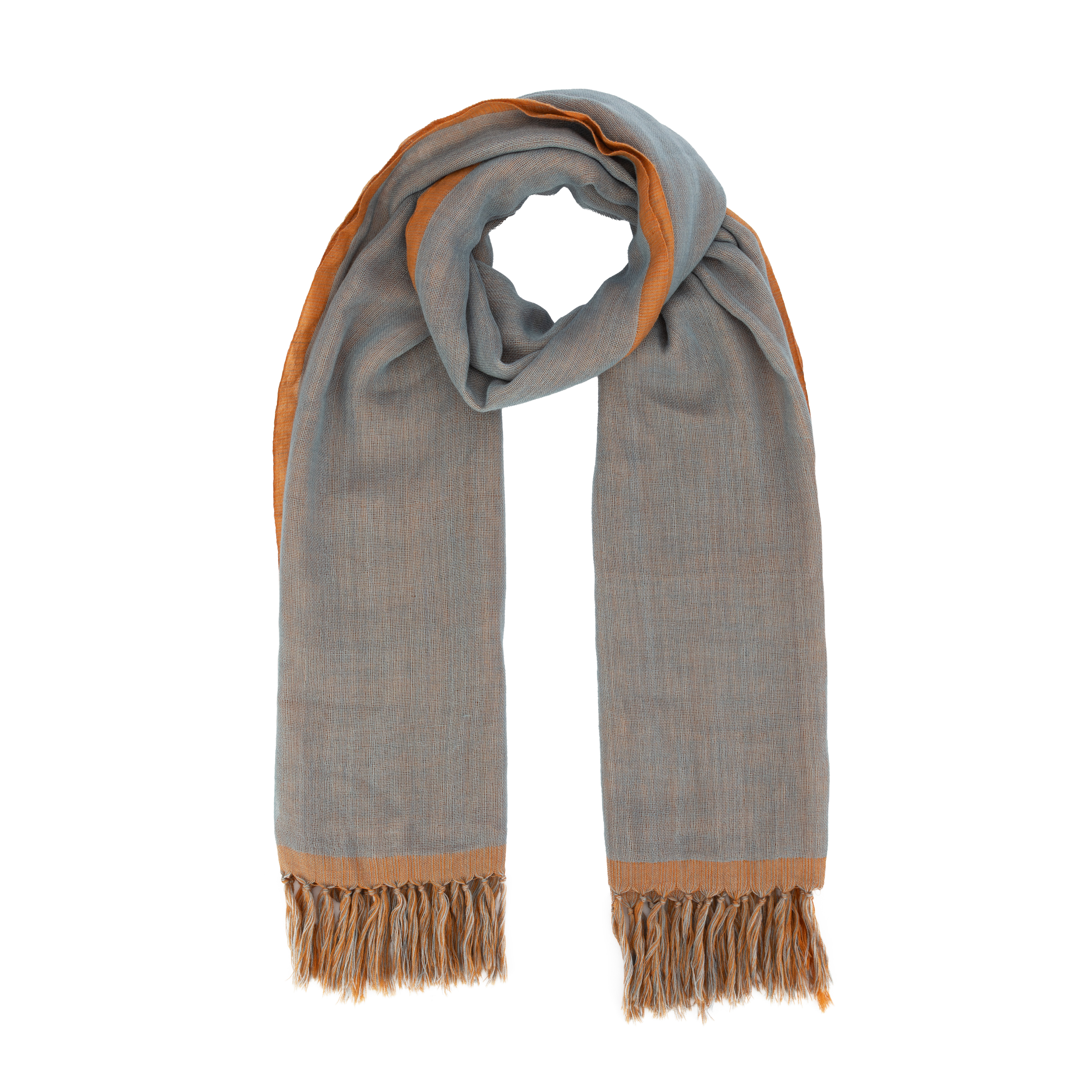 100% Merino-Wolle, handgewebt, blau/bran, 70 x 180 cm