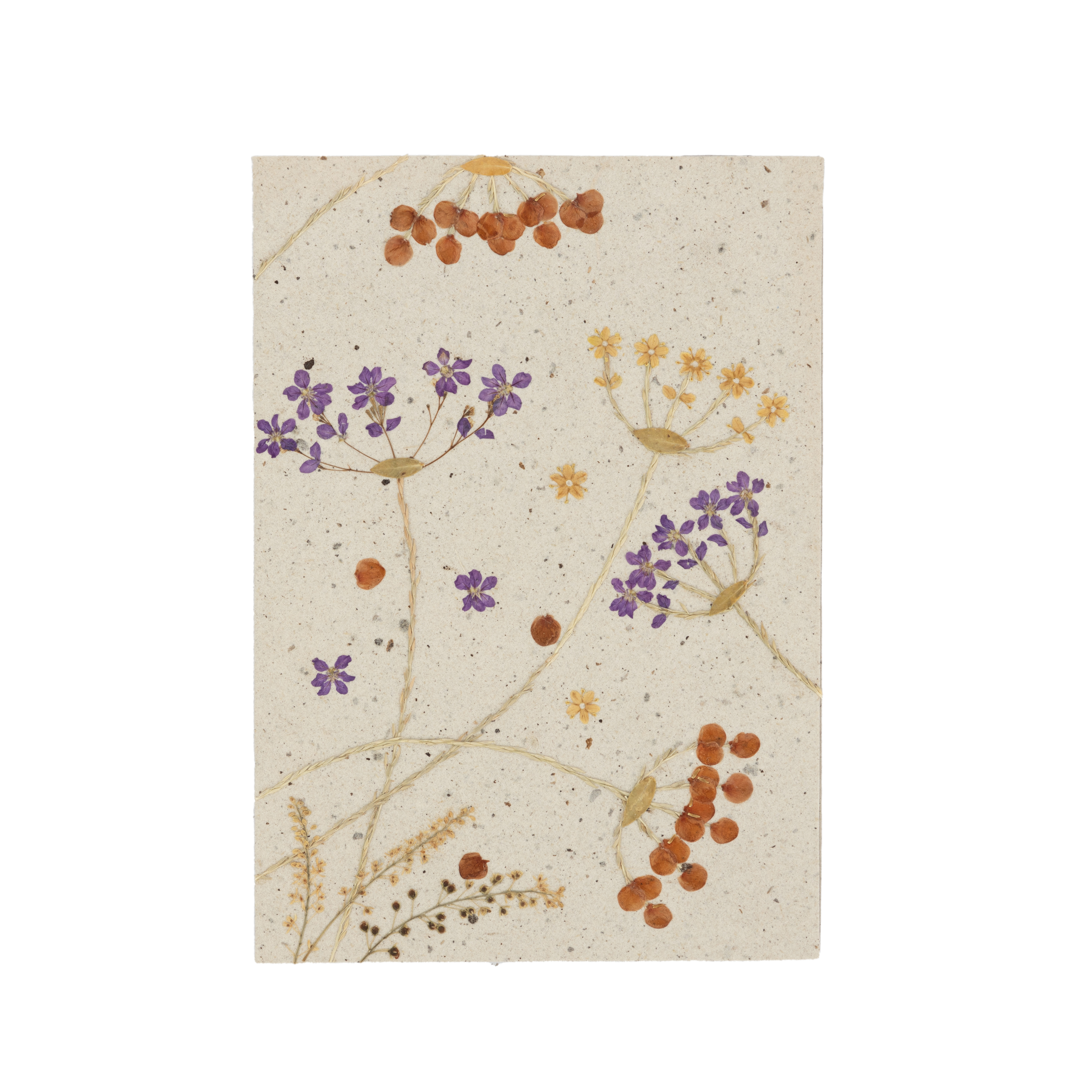 handgeschöpftes Papier, mit Blatt-Applikation, Doppelkarte mit Umschlag, natur/bunt, 12 x 17 cm