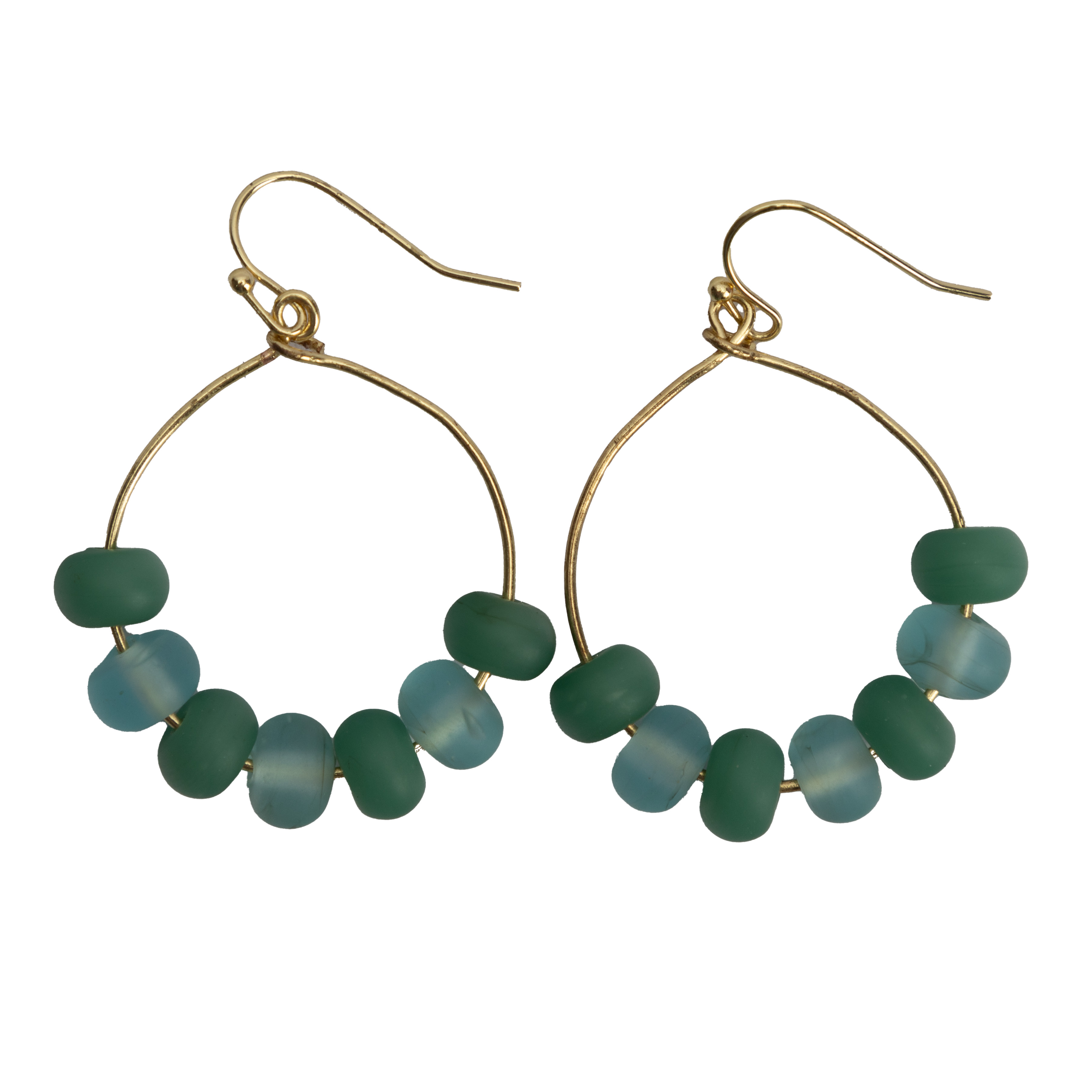 Messing, Glasperlen, hellblau/grün, 4,5 x 3 cm