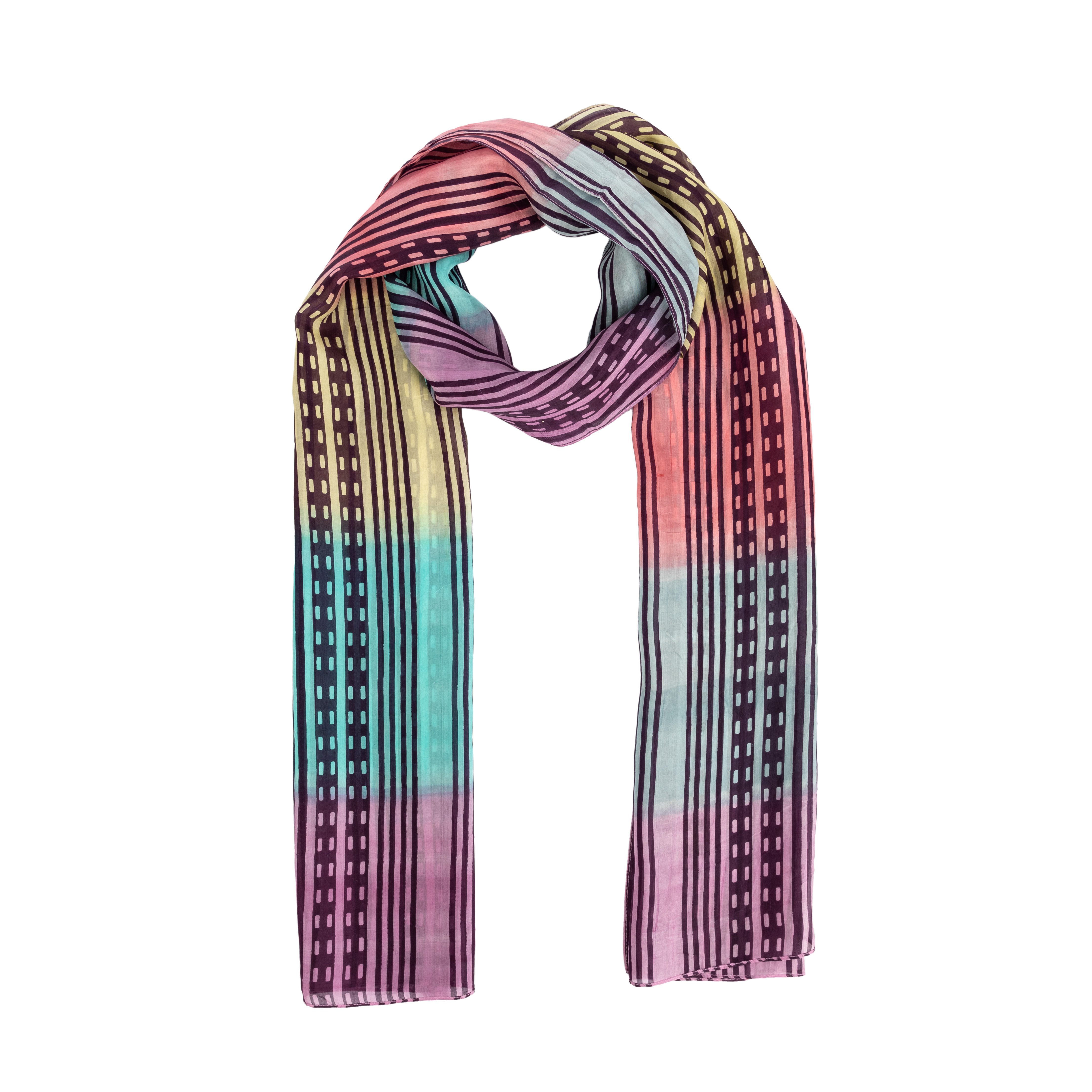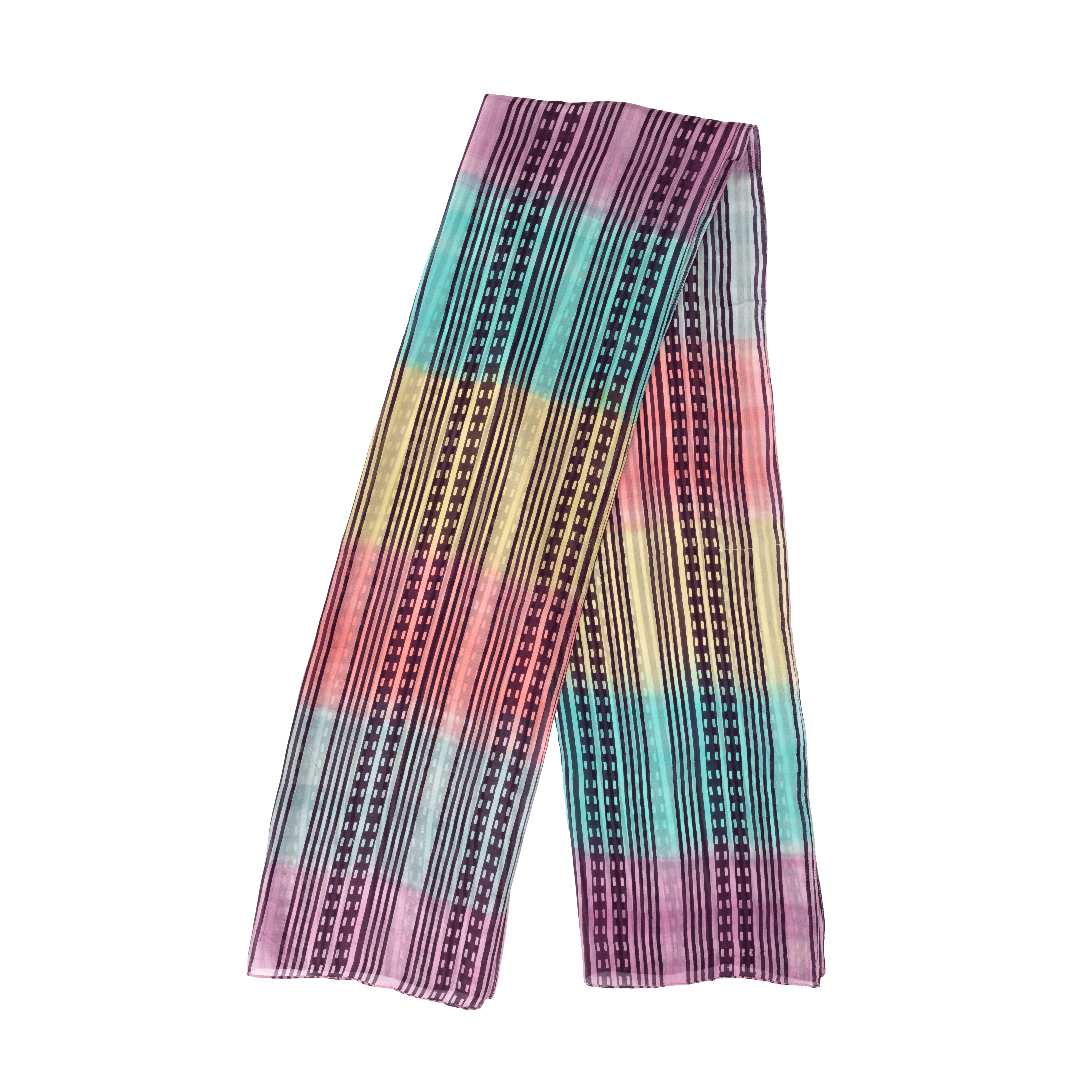 100% Seide, handgewebt und -bedruckt, lila/pink/gelb/blau, 50 x 180 cm