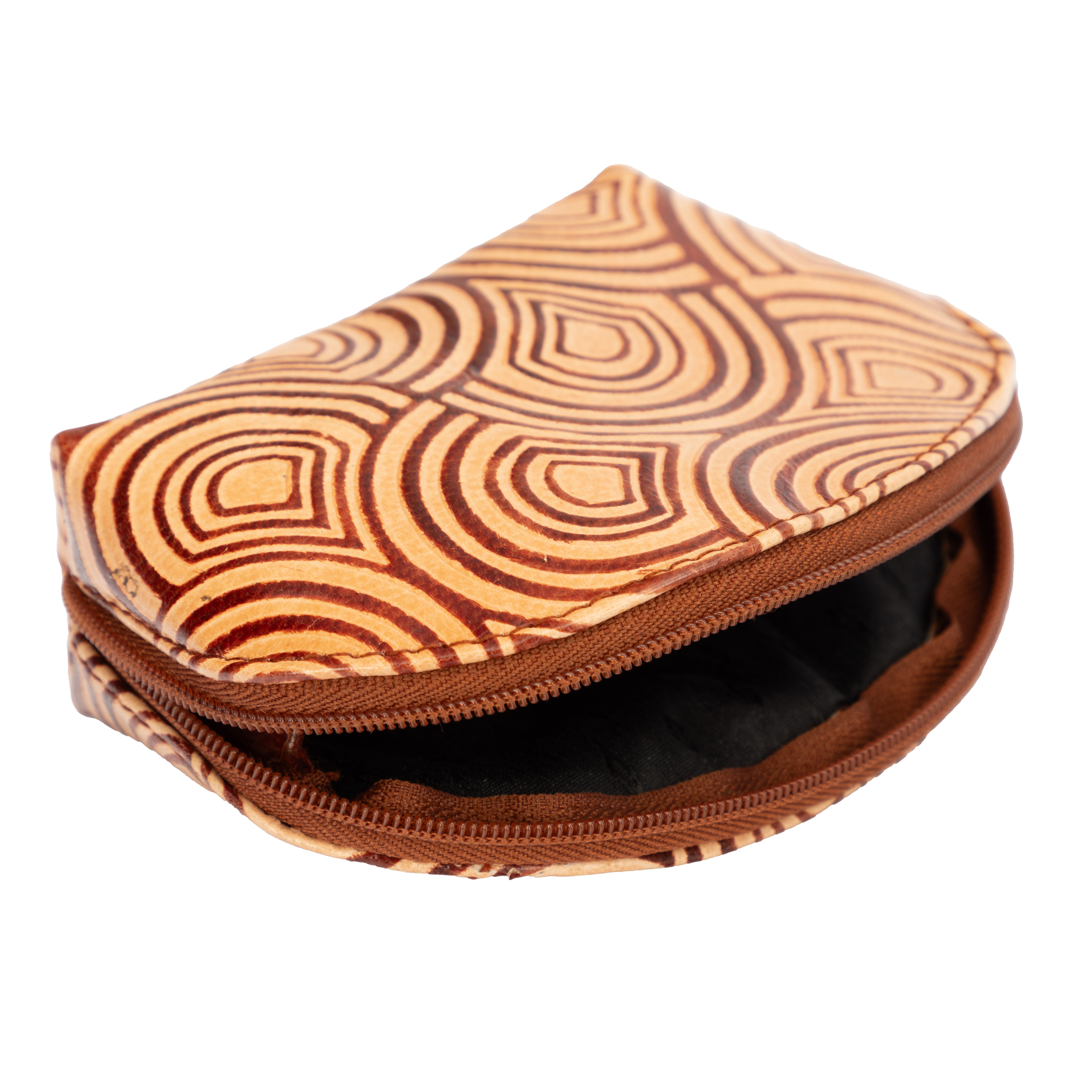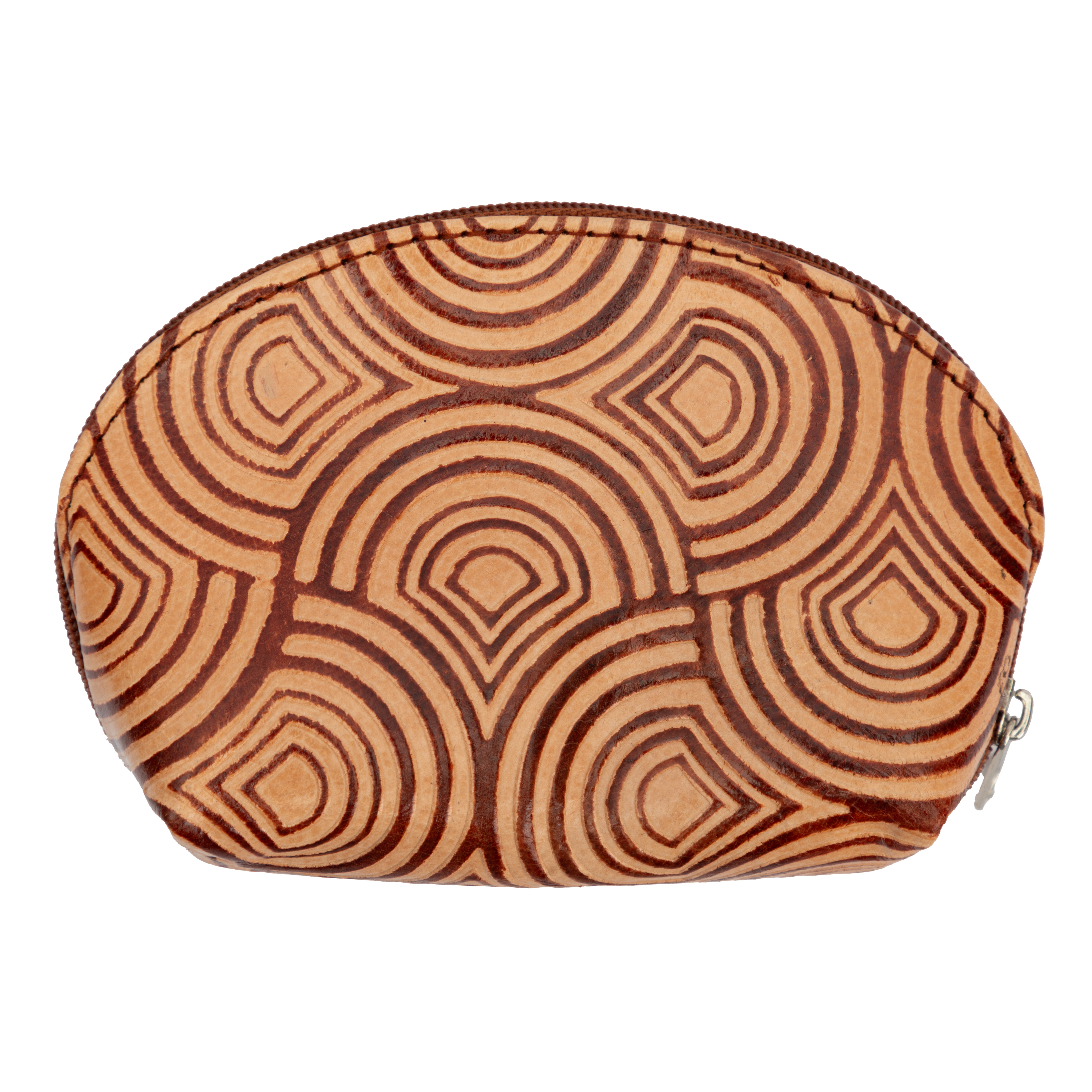 Ziegenleder, beige/braun, halbrund, 13 x 9 cm