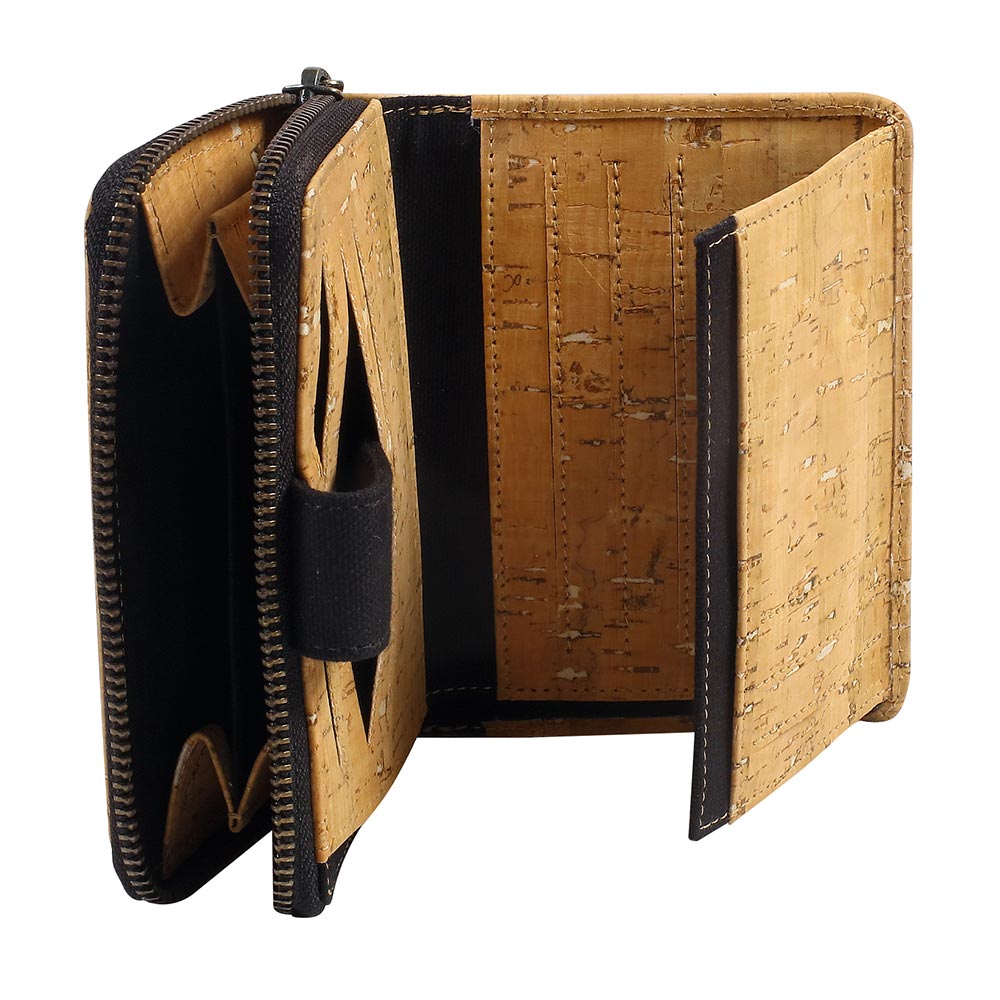 Geldbörse, großes Münzfach mit Reißverschluss, Schein- und Kartenfächer, Kork mit Bio-Canvas, Innenseite Kork mit Bio-Baumwolle, 13x9x3