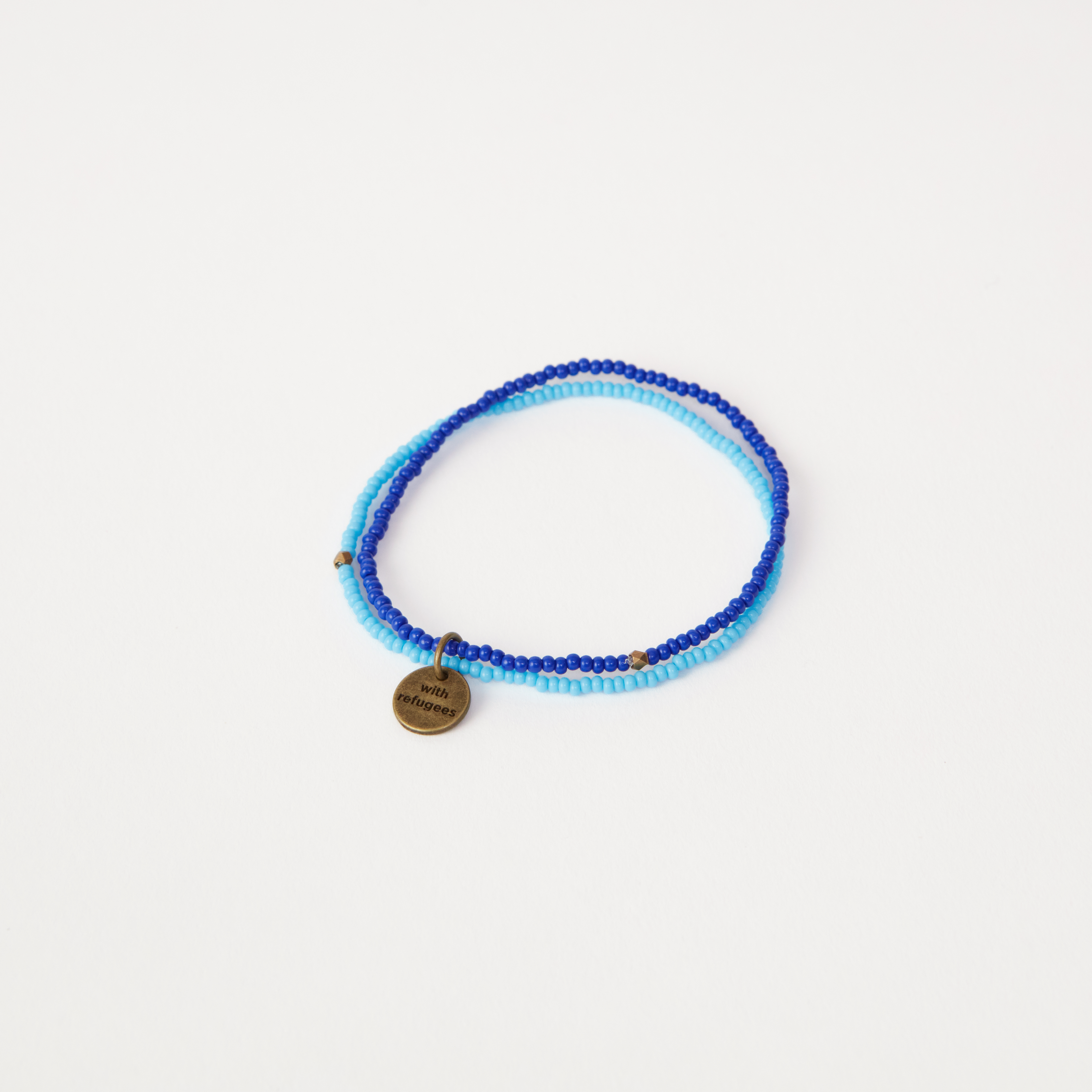 Glasperlen, Messing, handbestickt, blau/weiß, Ø?18?cm, Für jedes verkaufte Armband gehen 2?US-Dollar direkt an das UNHCR, um den Schutz und Lösungen für Geflüchtete weltweit zu unterstützen.
