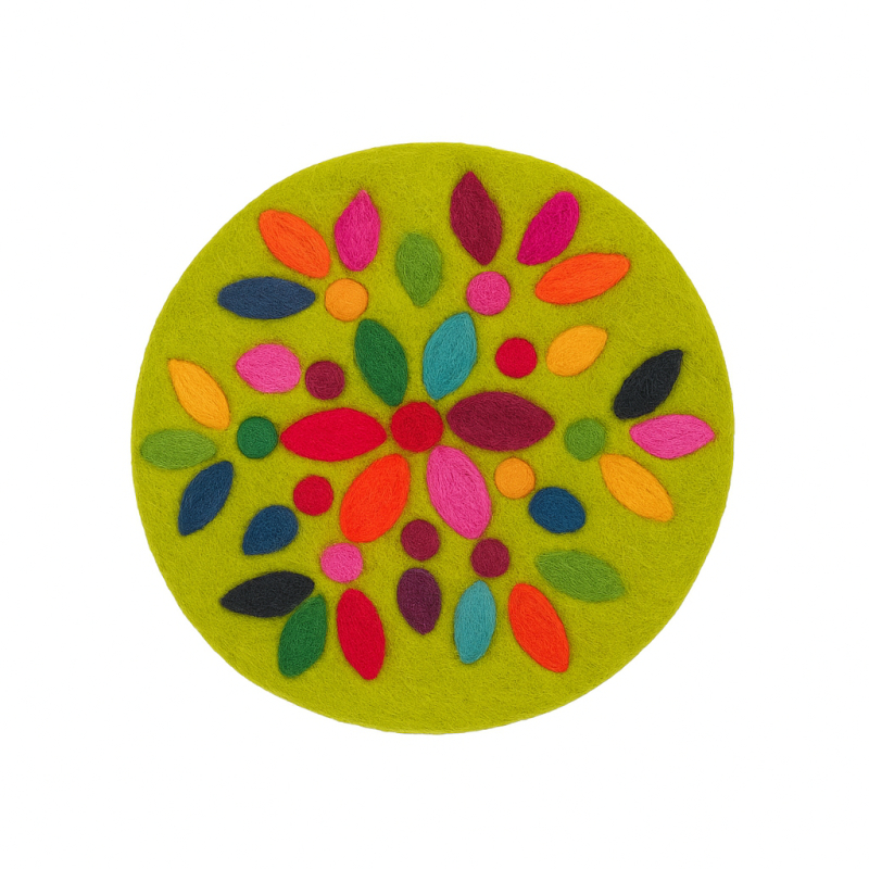 Untersetzer bunte Blueten, gruen ( ca. 21 cm)