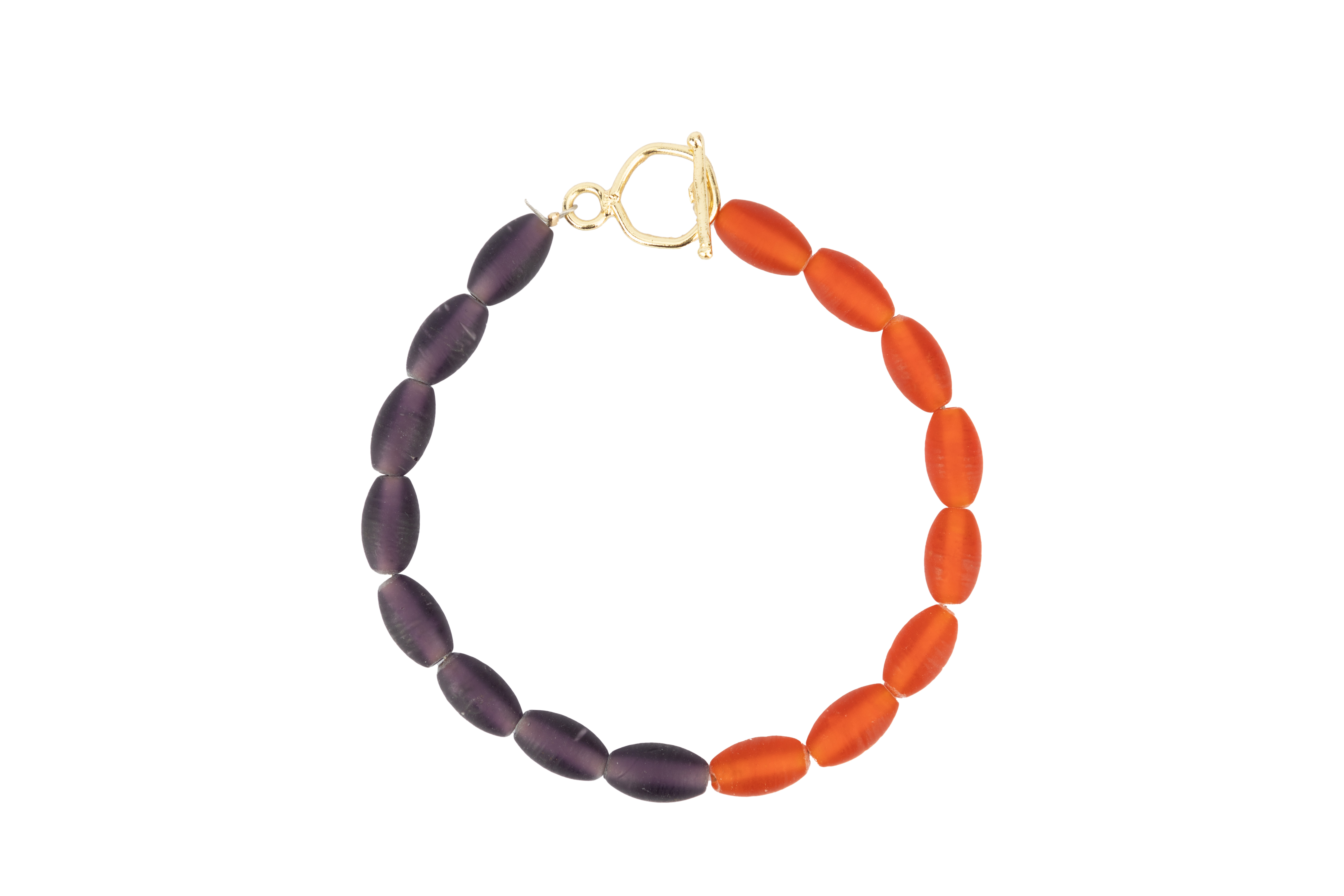 Glasperlen, Verschluss aus Messing, orange/lila, L 20 cm
