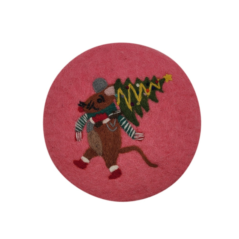 Filz Untersetzer Maus mit Weihnachtsbaum, hellrot