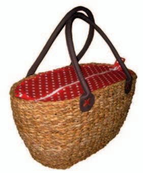 Elefantengras, natur, Innenfutter rot,, 48 x 23 x 24 cm,