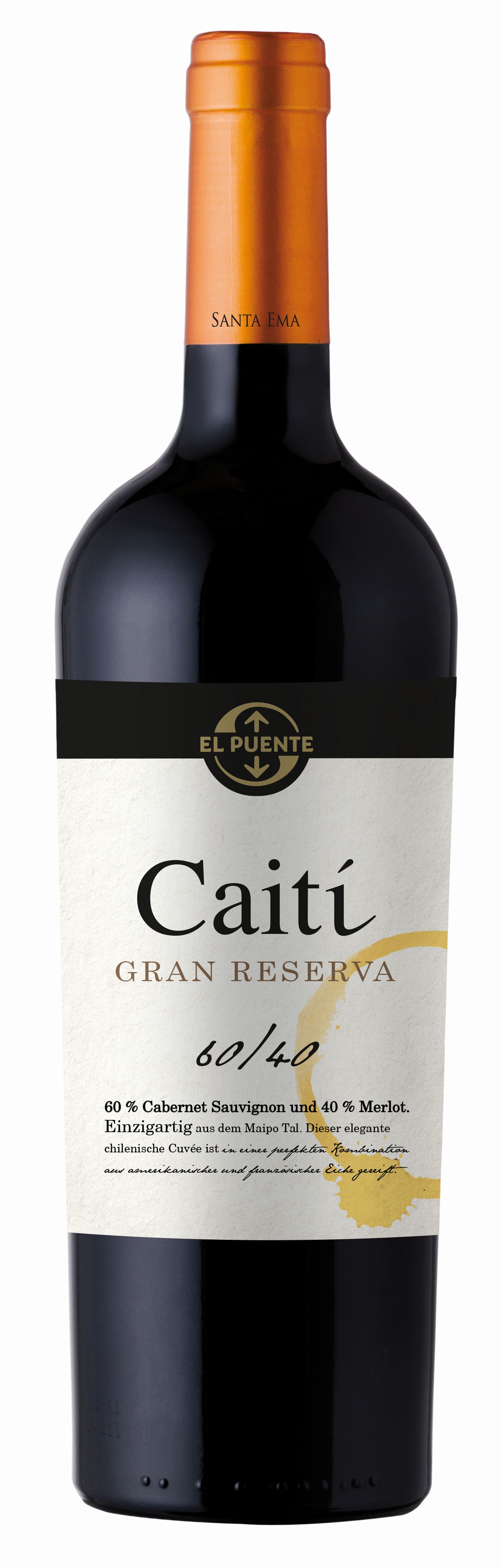 Chilenischer Rotwein, Valle de Maipo, 60% Cabernet Sauvignon, 40% Merlot, trocken, 14% vol., 0,75 l