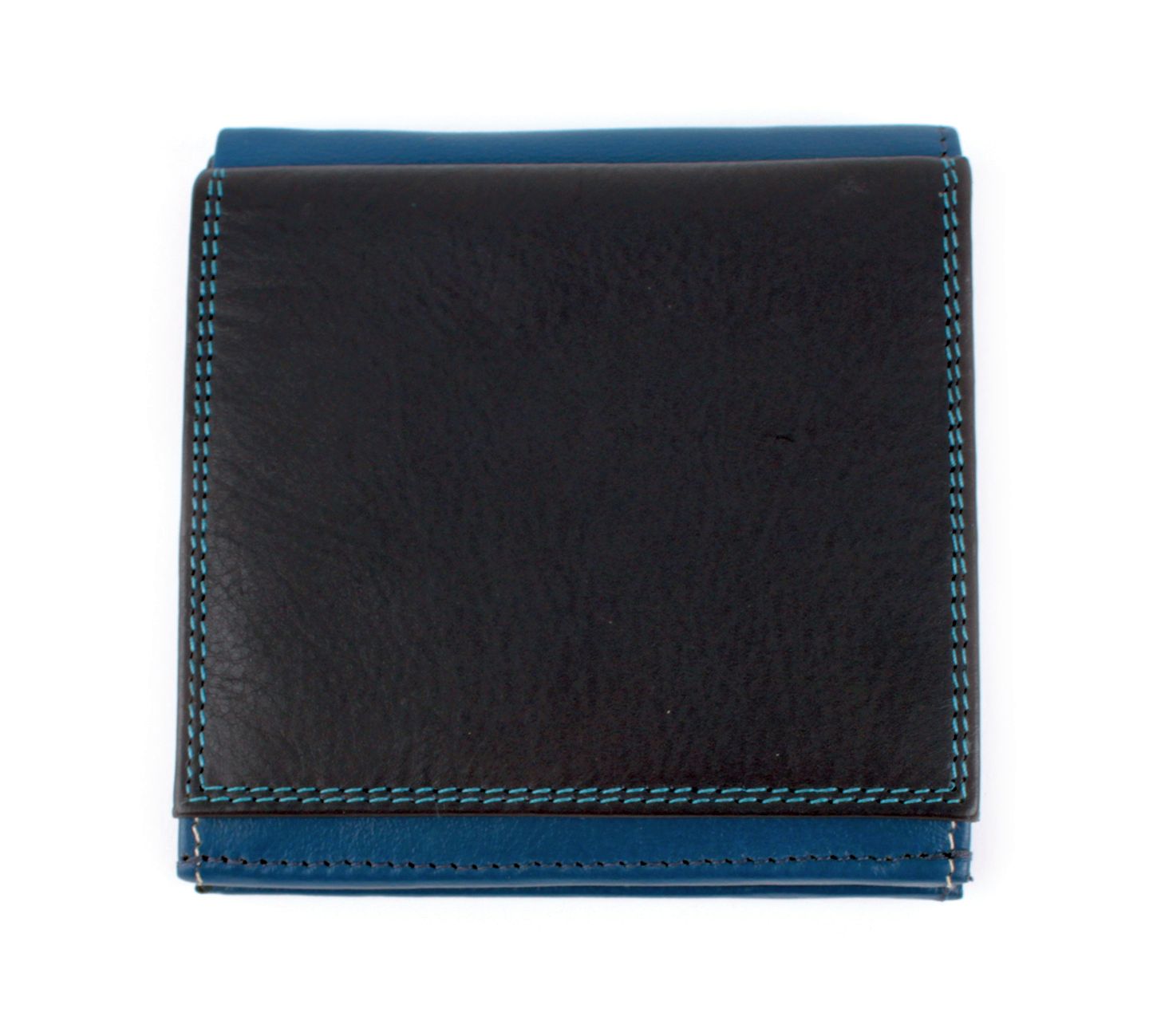 Rindsleder, mit RFID-Protection, blau/multicolor, 10 x 10 cm