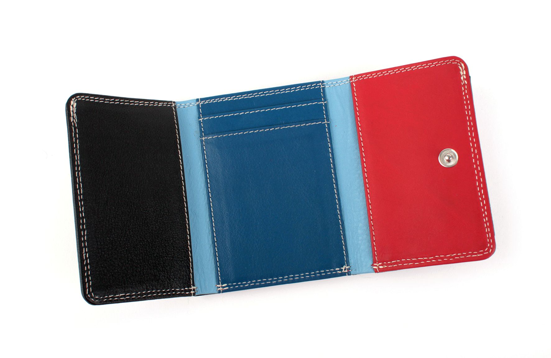 Rindsleder, mit RFID-Protection, schwarz/multicolor, 10 x 8 cm