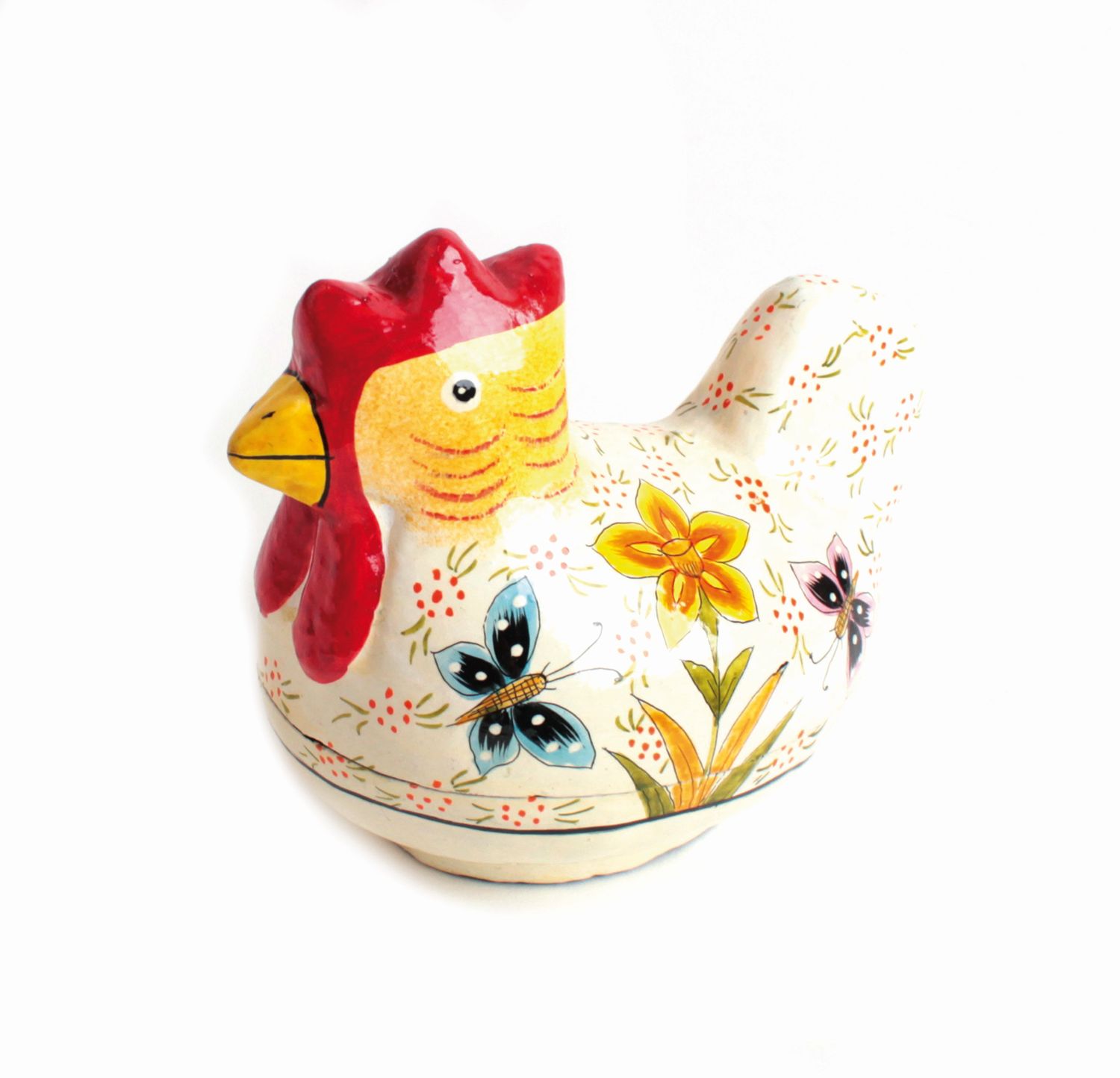 Pappmaschee, lackiert, creme mit floraler Bemalung, 13 x 11 cm