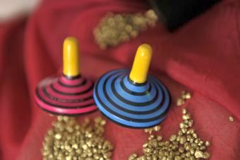 5 Stück, Pala-Indigo-Holz,, farbig lackiert,