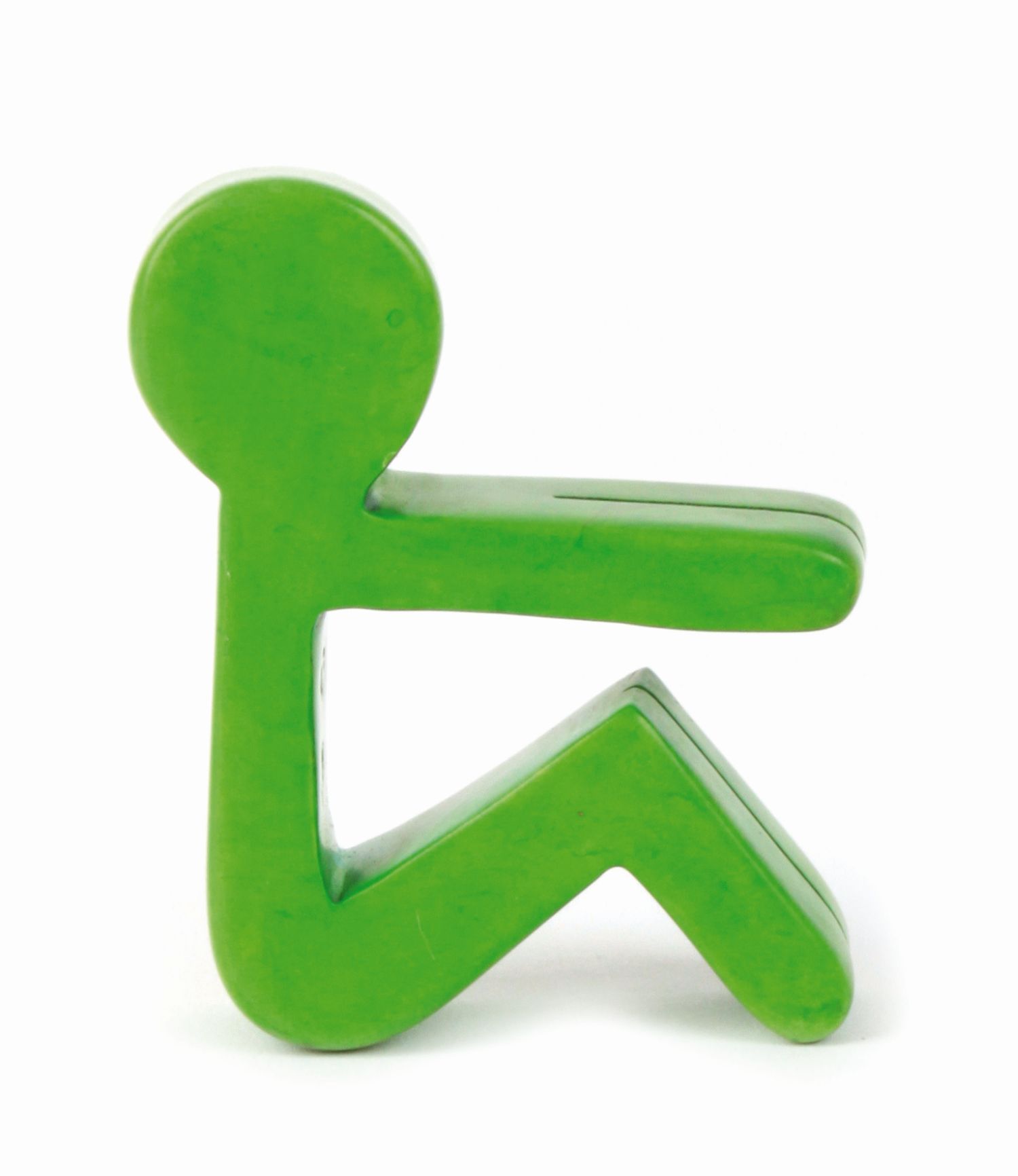 sitzend, Kisii-Speckstein, bemalt,, grün, ca. B 4 cm, H 7 cm,