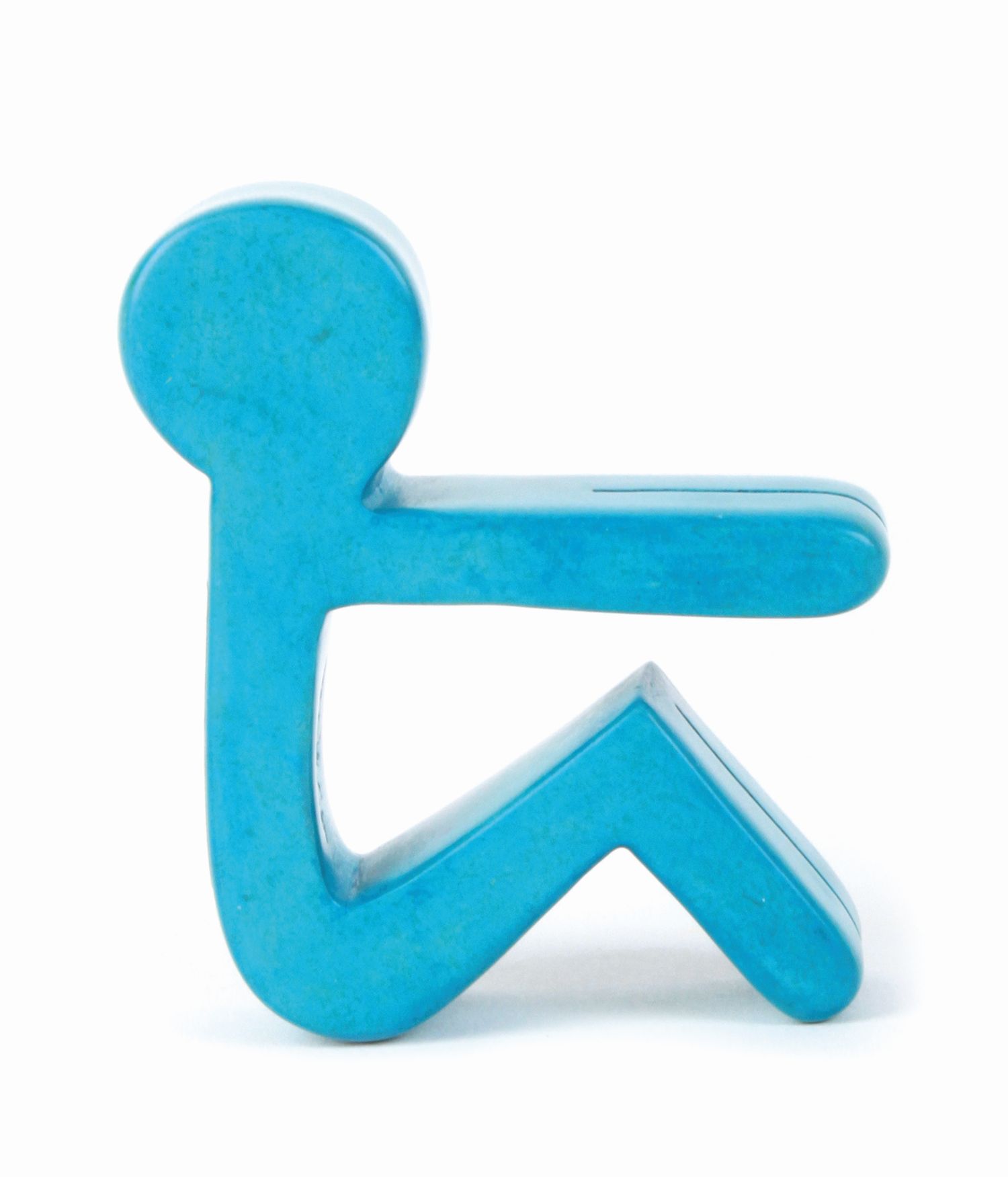 sitzend, Kisii-Speckstein, bemalt,, türkis, ca. B 5 cm, H 7 cm,