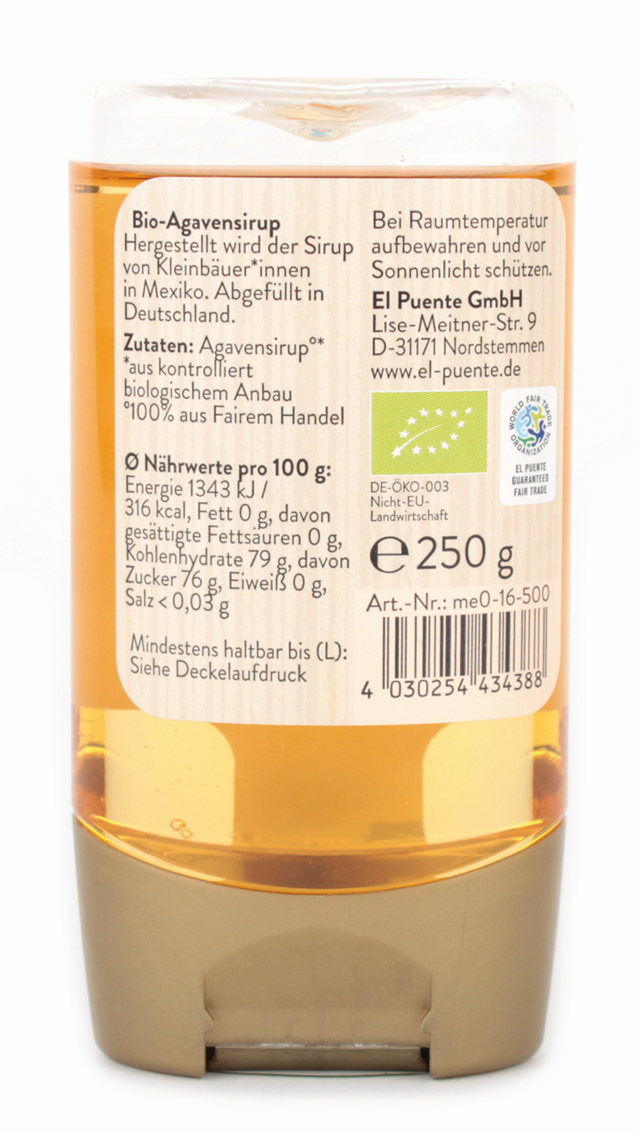 Der Bio-Agavensirup hat einen mild-aromatischen Geschmack und eignet sich ideal zum Süßen. Hergestellt wird der hochwertige Sirup von Kleinbauern in Mexiko.
