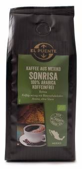 Der Sonrisa hat einen guten Körper mit kräftig, würzigem Geschmack und Bitterschokoladen-Aroma. Er hat kaum Säure und ist entkoffeiniert.
