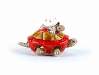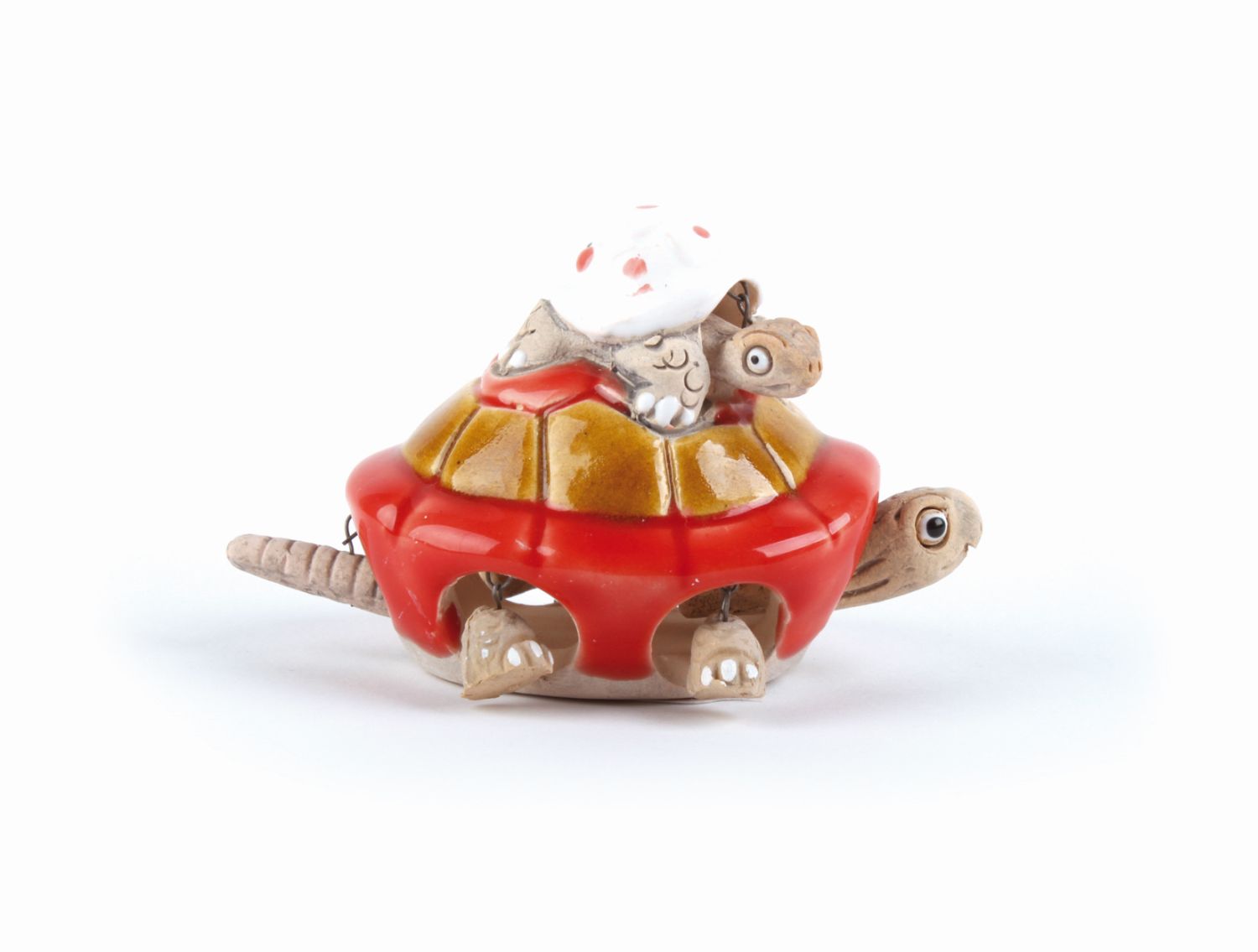 Kopf, Beine und Schwanz wackeln,, Ton, rot, weiß und gelb, 5 x 5 x 7,5 cm,