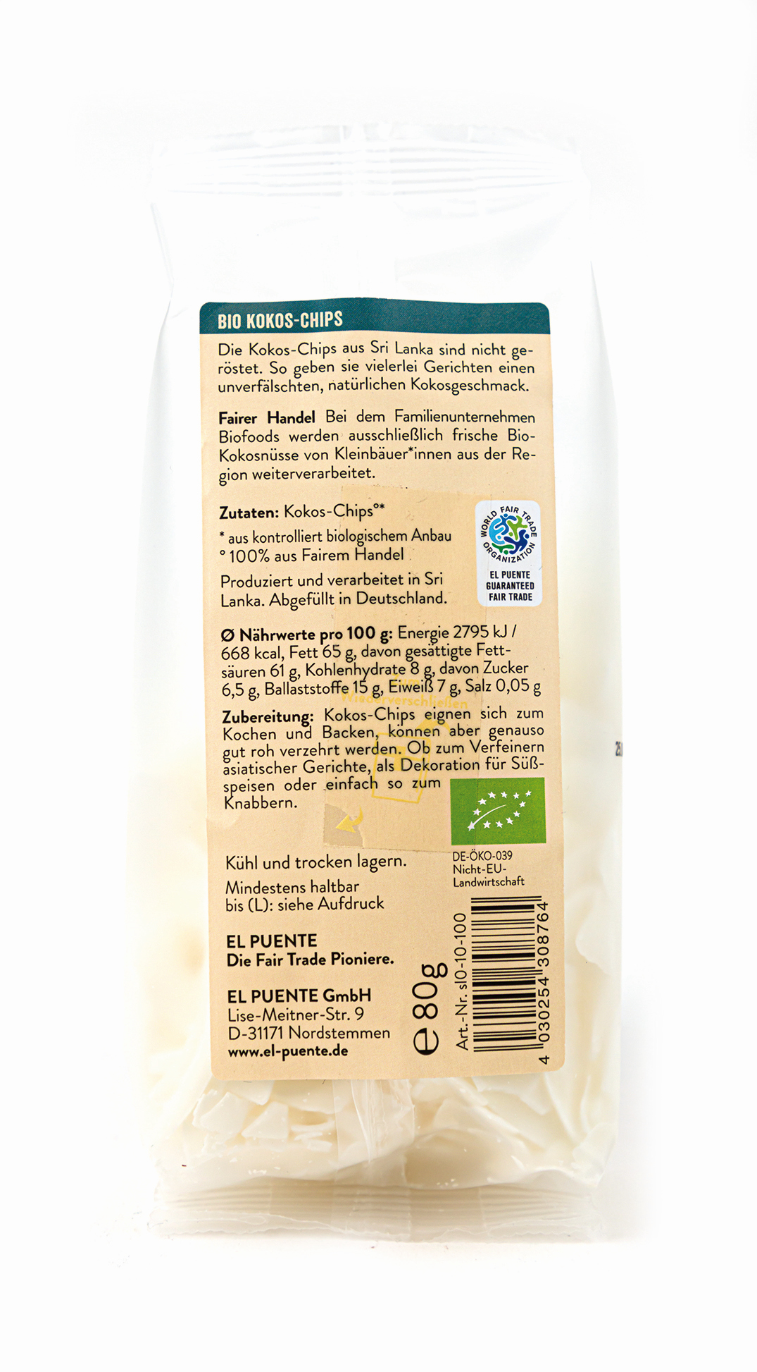 Unsere fein gehobelten Bio- Kokoschips laden zum Knabbern ein. Sie eignen sich auch zum Kochen oder als Zutat für frische Obstdesserts.