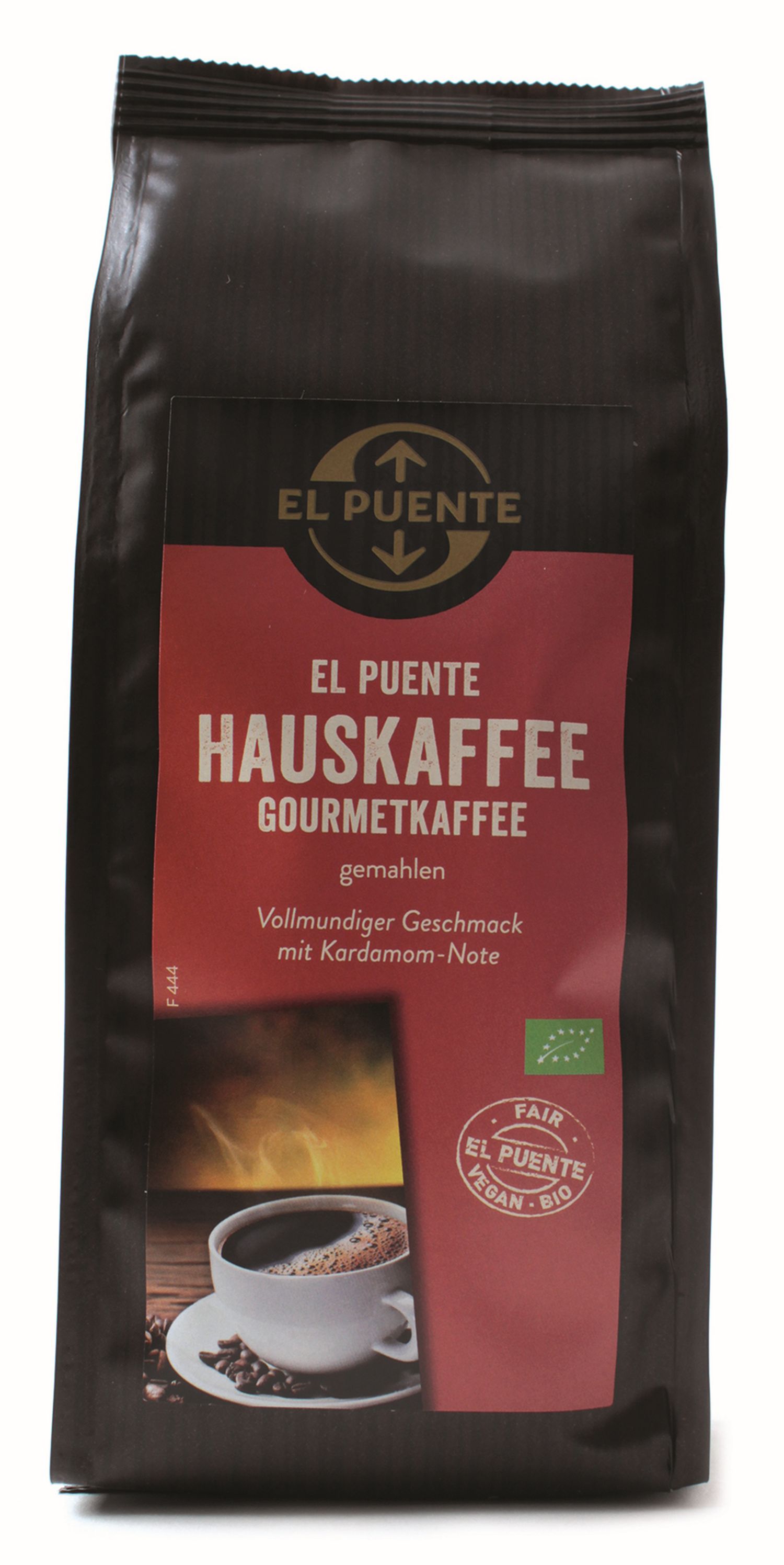 Der El Puente Hauskaffee hat einen vollen Körper und schmeckt mild-würzig durch seine leichte Kardamom-Note. Ein Kaffee der durch seine dunkle Röstung nur wenig Säure hat.