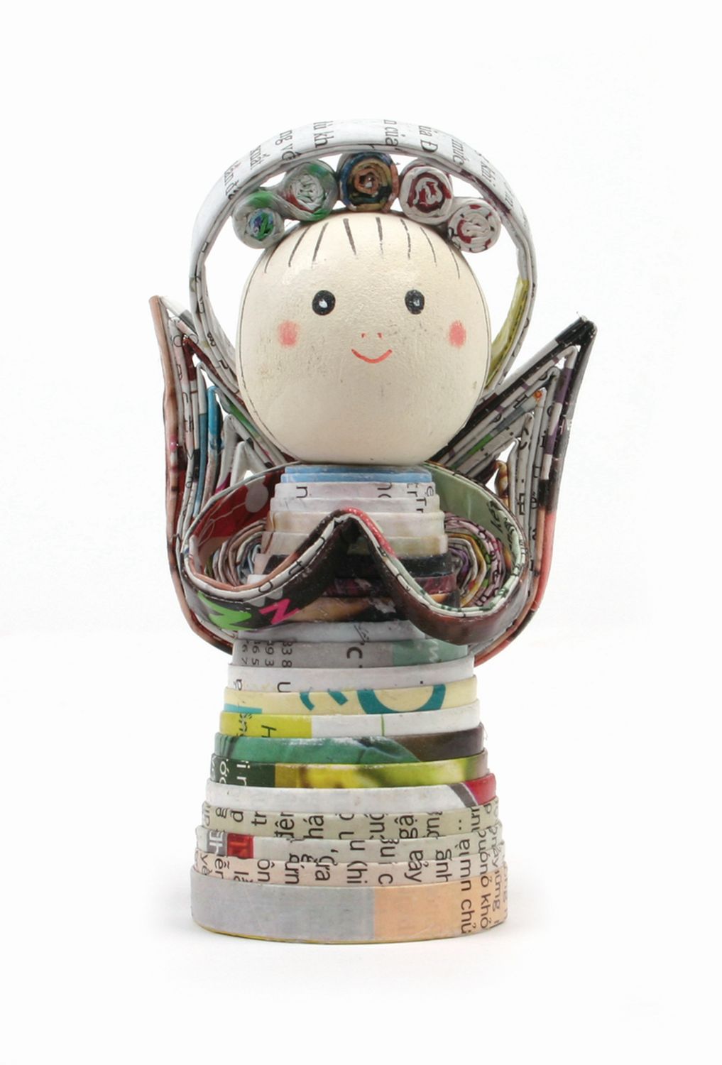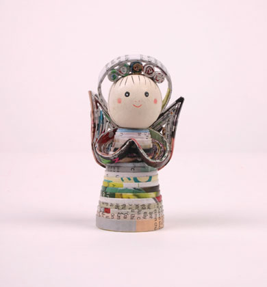 Zeitungspapier, gerollt, mit Verzierung, H 10 cm