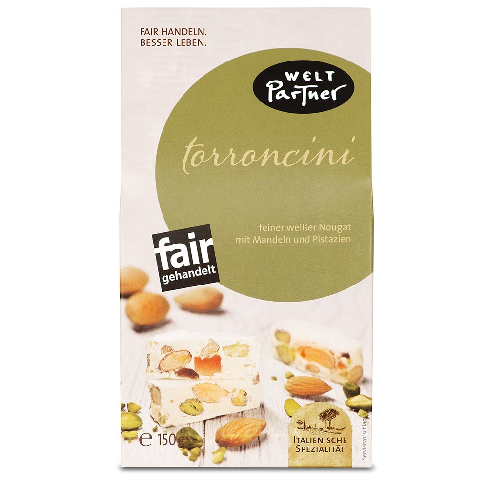 Original italienischer weißer Nougat mit Mandeln und Pistazien, in kleinen Portionen, einzeln verpackt.