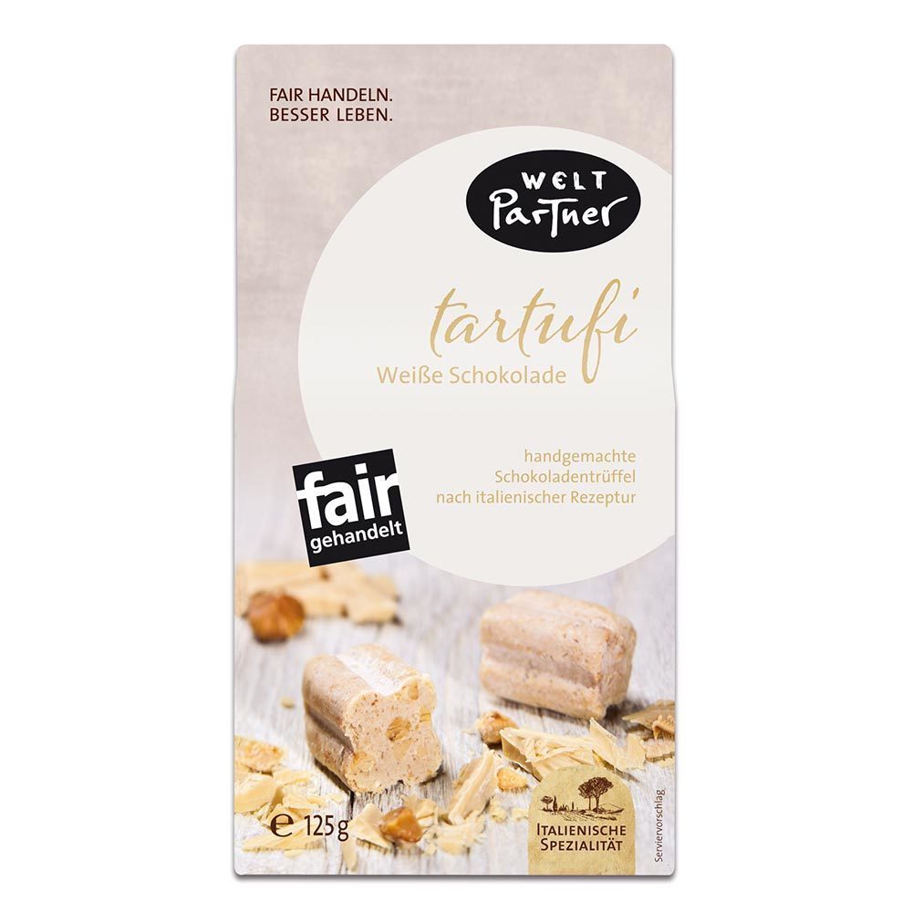La Dolce Vita: Hochwertige Fairhandelszutaten, traditionelle Rezepturen und sorgfältige Handarbeit – das sind die Geheimnisse der unwiderstehlichen Schokoladentrüffel „Tartufi“ aus der Confetteria unseres Partners, der Sozialkooperative Libero Mondo/Piemont.