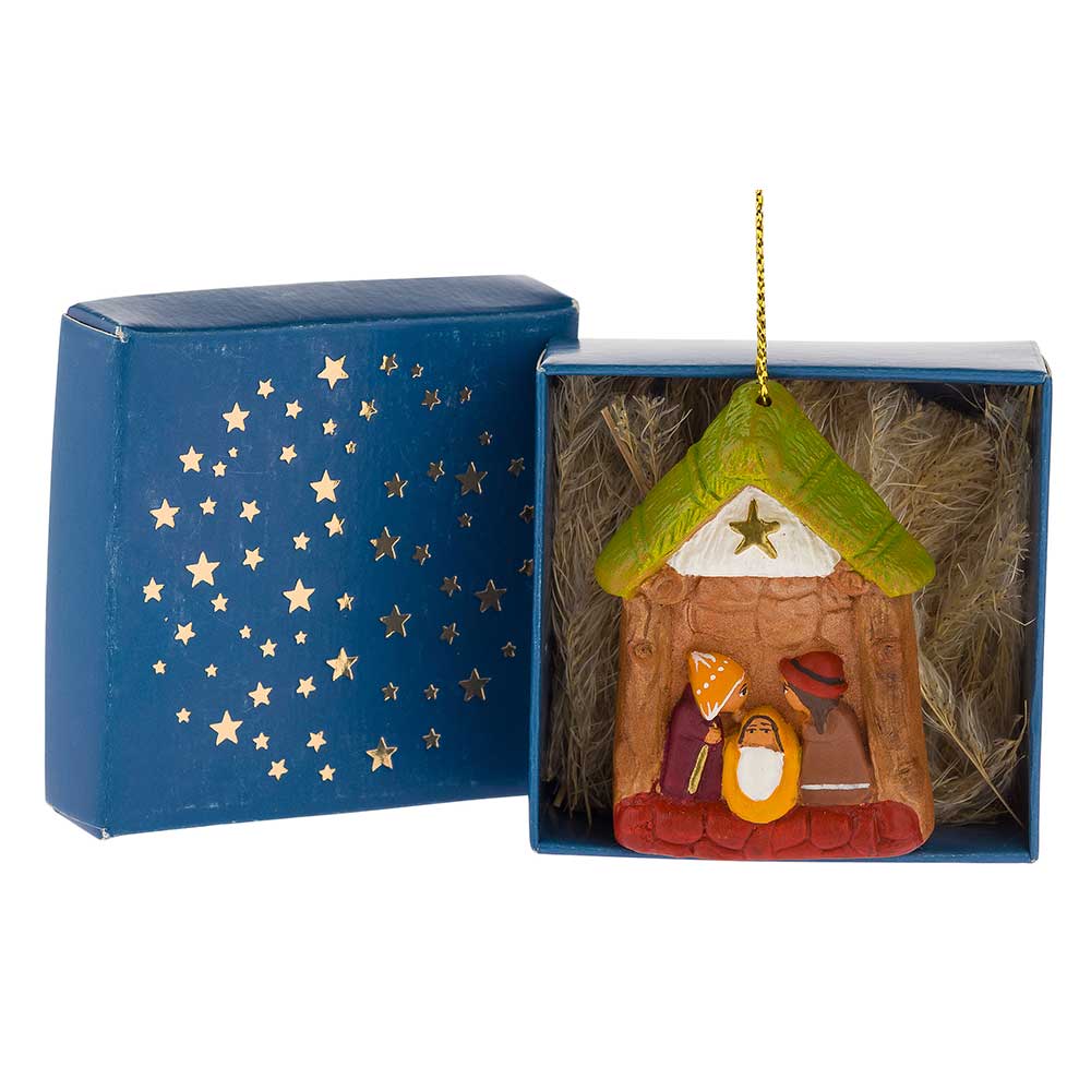Kleinkrippe in Schachtel "Hl. Familie in Hütte"