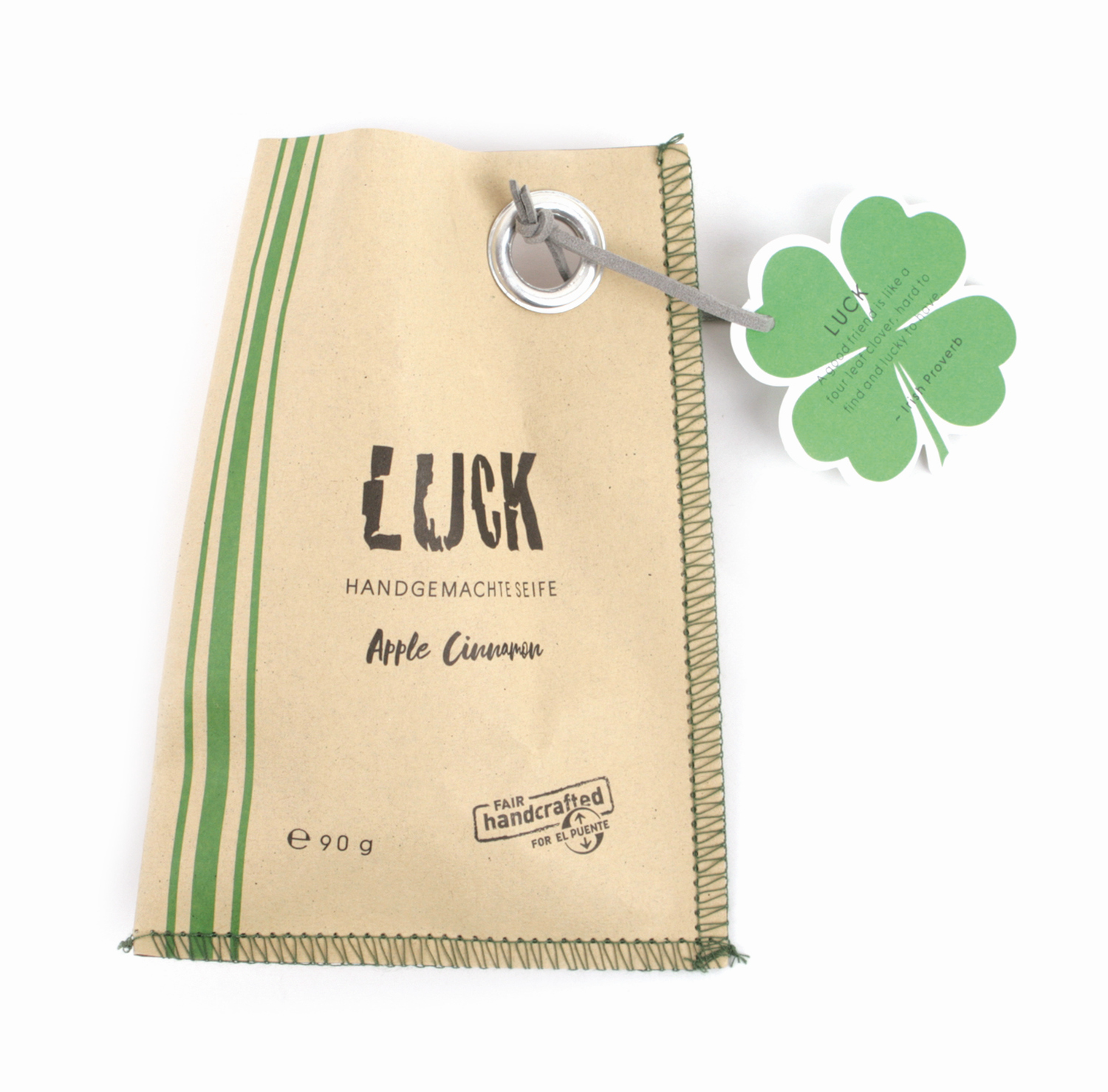 handgemachte Stückseife aus pflanzlichen Ölen,, mit Glückssymbol, Sorte: Apple Cinnamon,, 90 g,