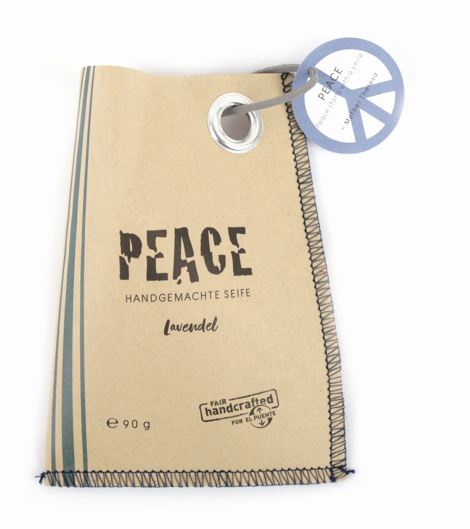 handgemachte Stückseife aus pflanzlichen Ölen,, mit Peace-Symbol, Sorte: Lavendel,, 90 g,