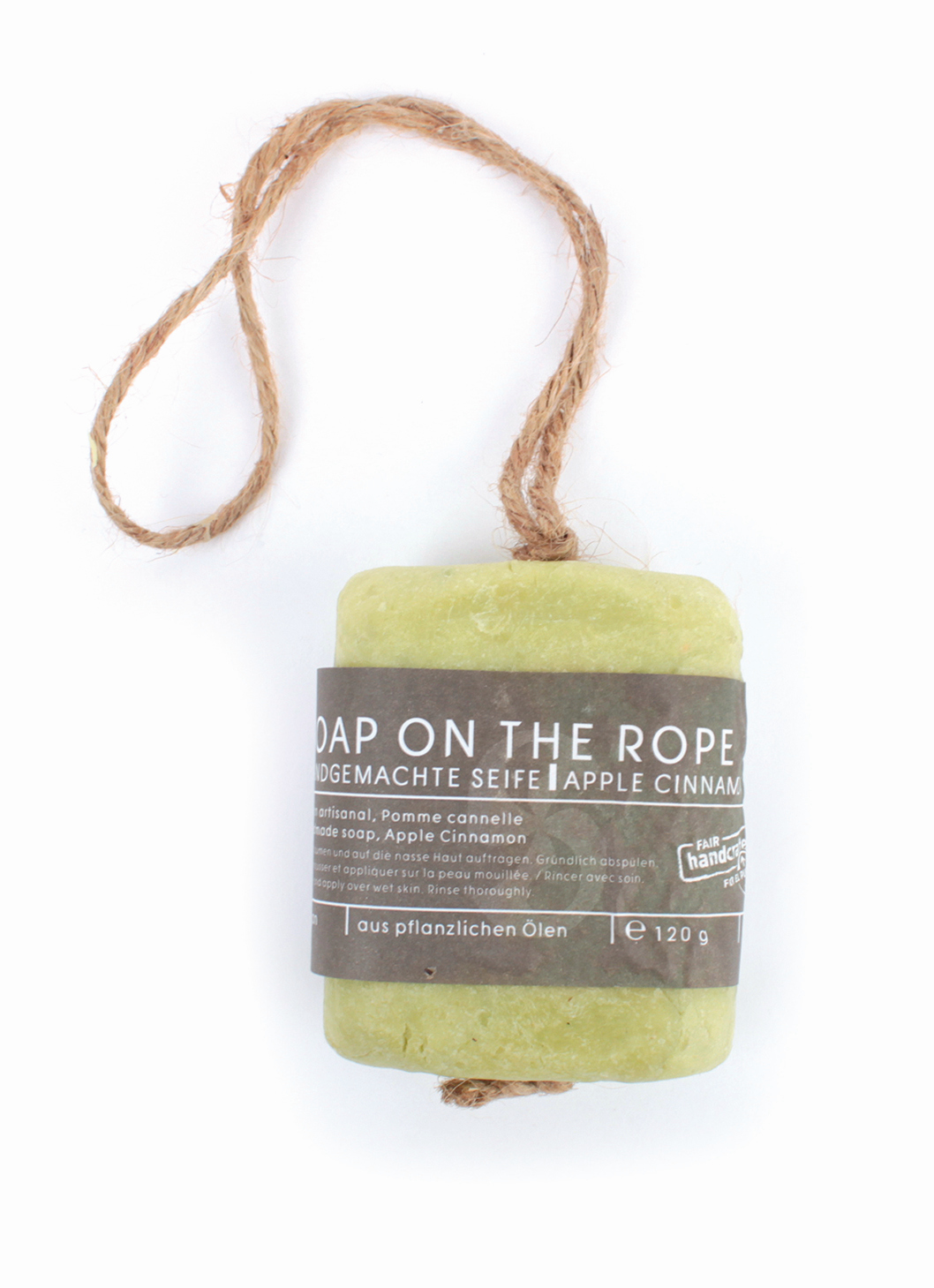 handgemachte Stückseife aus pflanzlichen Ölen,, mit Juteaufhängung, Sorte: Apple Cinnamon,, 120 g,