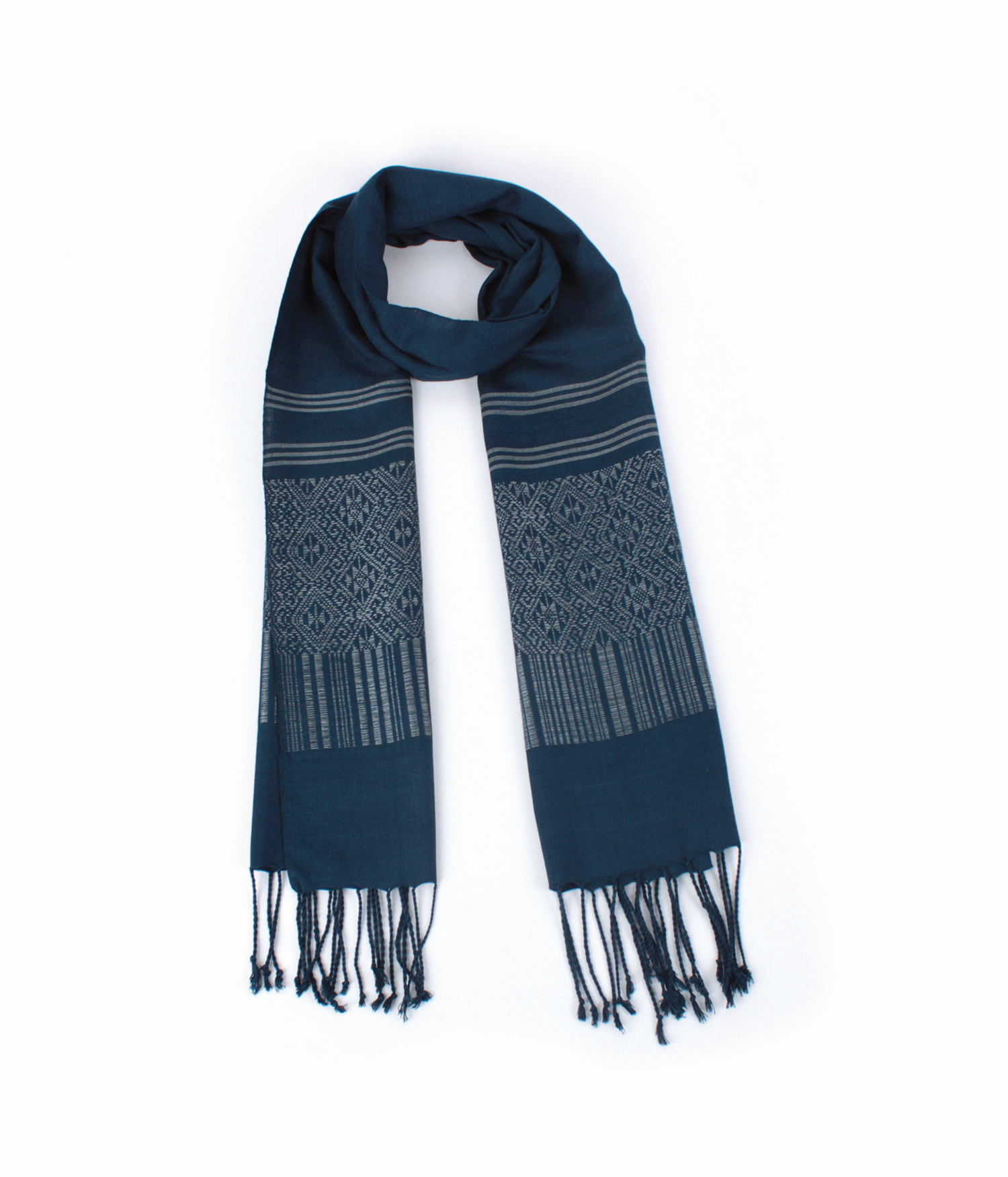 100% Viskose, handgewebt, blau, 40 x 180 cm