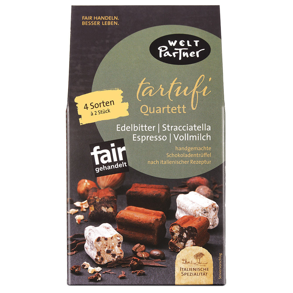 La Dolce Vita: Hochwertige Fairhandelszutaten, traditionelle Rezepturen und sorgfältige Handarbeit – das sind die Geheimnisse der unwiderstehlichen Schokoladentrüffel „Tartufi“ aus der Confetteria unseres Partners, der Sozialkooperative Libero Mondo/Piemont.