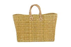 Seegras, handgewebt, mit Ziegenledergriffen H 28 cm, B 40 cm, T 15 cm